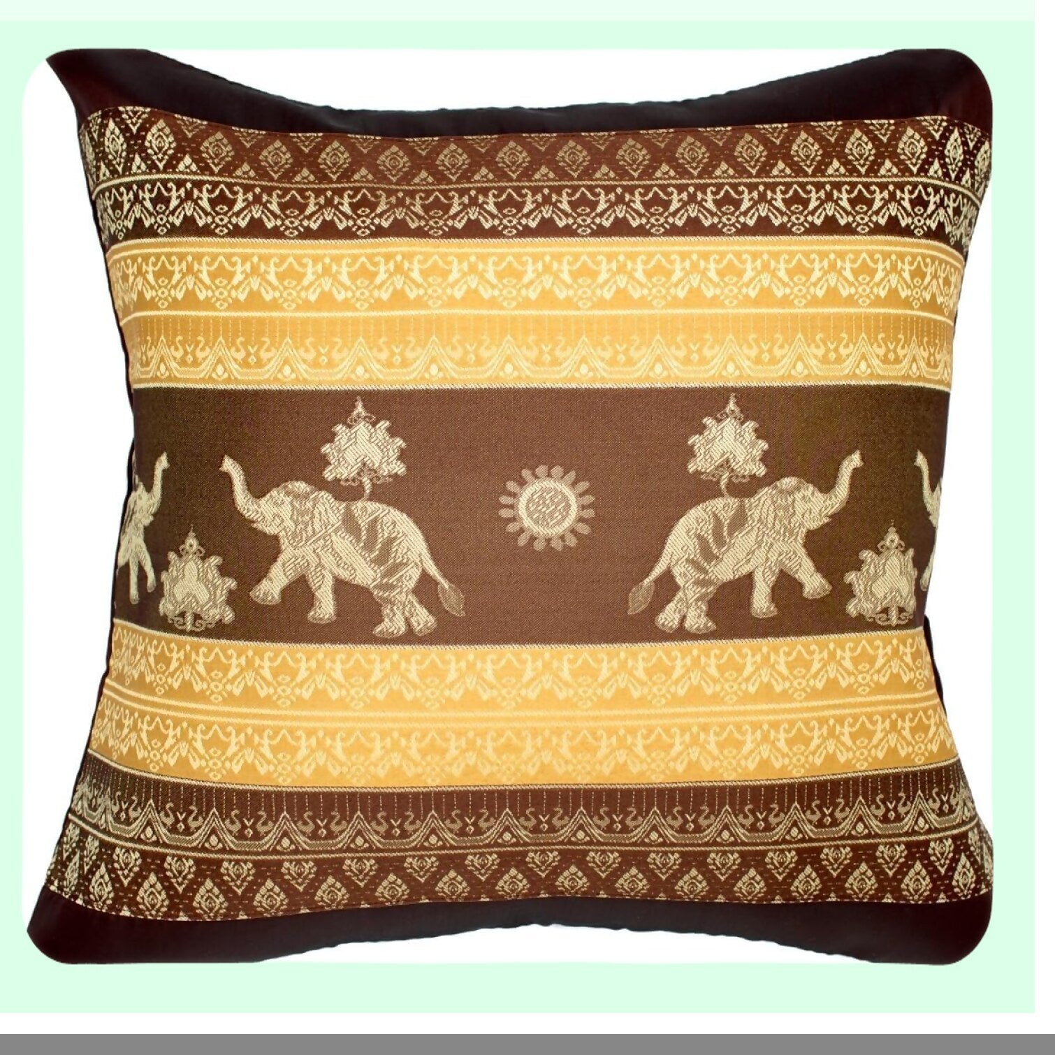 Elephant Sun Decorative Pillow Cover - Sofa Couch Chair Bed Cushion Case - 16x16 Inch - Brown - Back Zipper - Insert Not Included