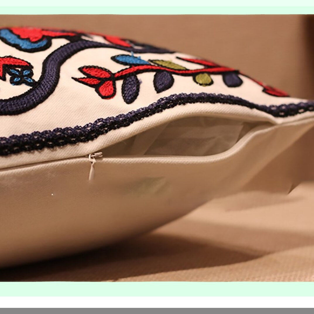 Bohemian Flower Embroidery Cushion Cover - Symmetrical Pattern Square Throw Pillow Case for Home Decor - Handmade National Housewarming Decoration