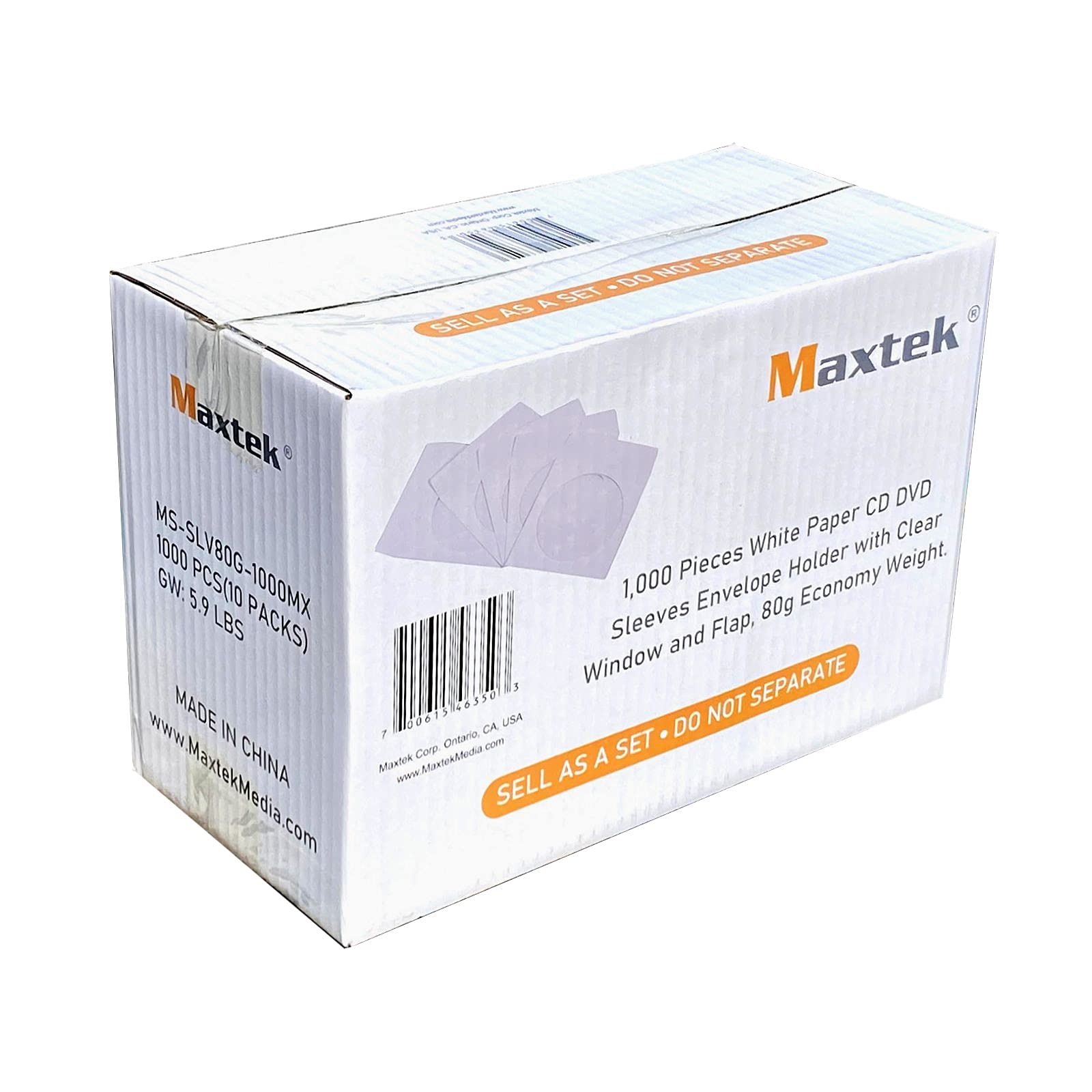 1,000 Pieces White Paper CD DVD Sleeves Envelope Holder with Clear Window and Flap, 80g Economy Weight.