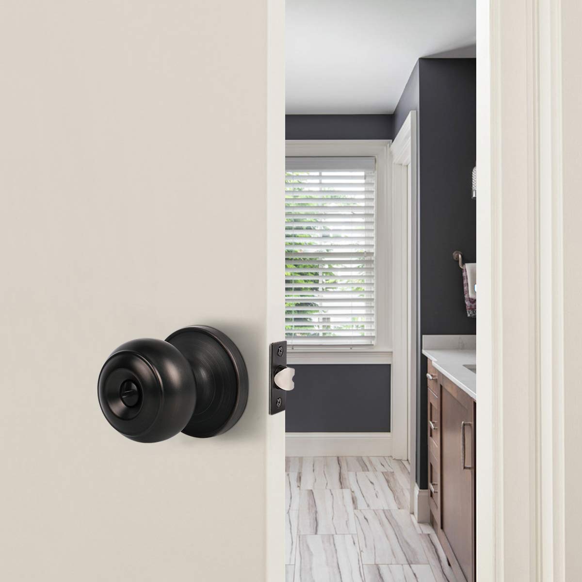 1 Pack Keyless Privacy Door Knob, Rubbed Bronze Door Knob In or, Privacy Door Knob for Bed/Bath Function In or Door Use, Round Shape
