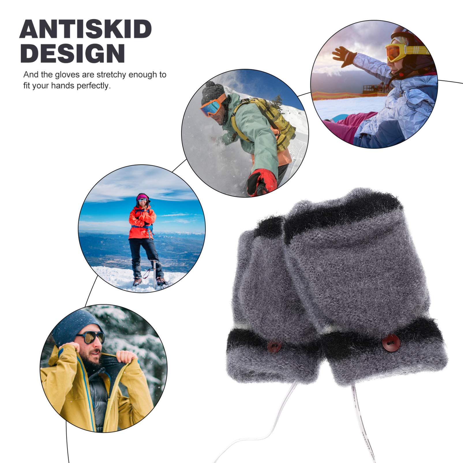 1 Pair USB Heated Gloves Winter Warm Laptop Gloves Half Hands Heated Fingerless Heating Knitting Hands Warmer for Home Office School Grey