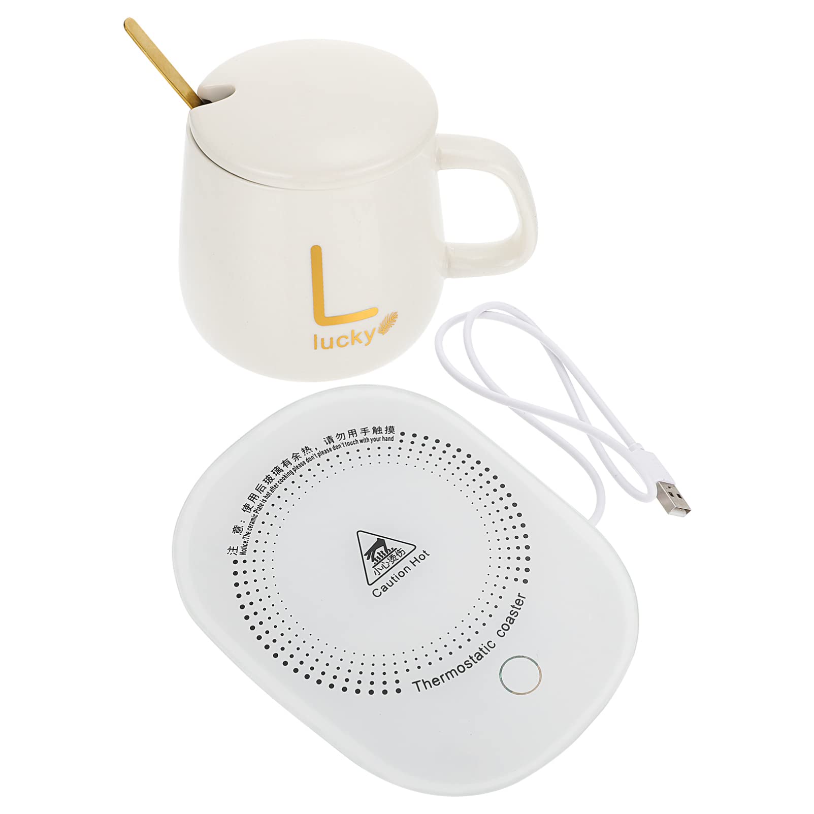 1 Set Mug Warmer Mat USB 55 Cup Warmer Drink Milk Heating Coaster Coffee Hot Plate Beverage Milk Cup for Home Office Shop White