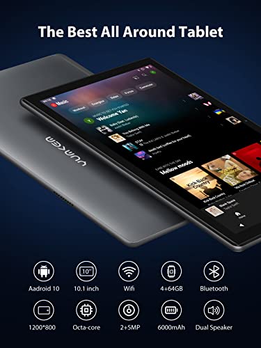 10 inch Octa Core Tablet, 4GB RAM 64GB Storage, Android Tablet with Keyboard and Tablet Case, 10.1 IPS HD Display, Android OS, 6000 mAh Battery, Bluetooth, 5G Wi-Fi, GPS, FM, Dark Grey
