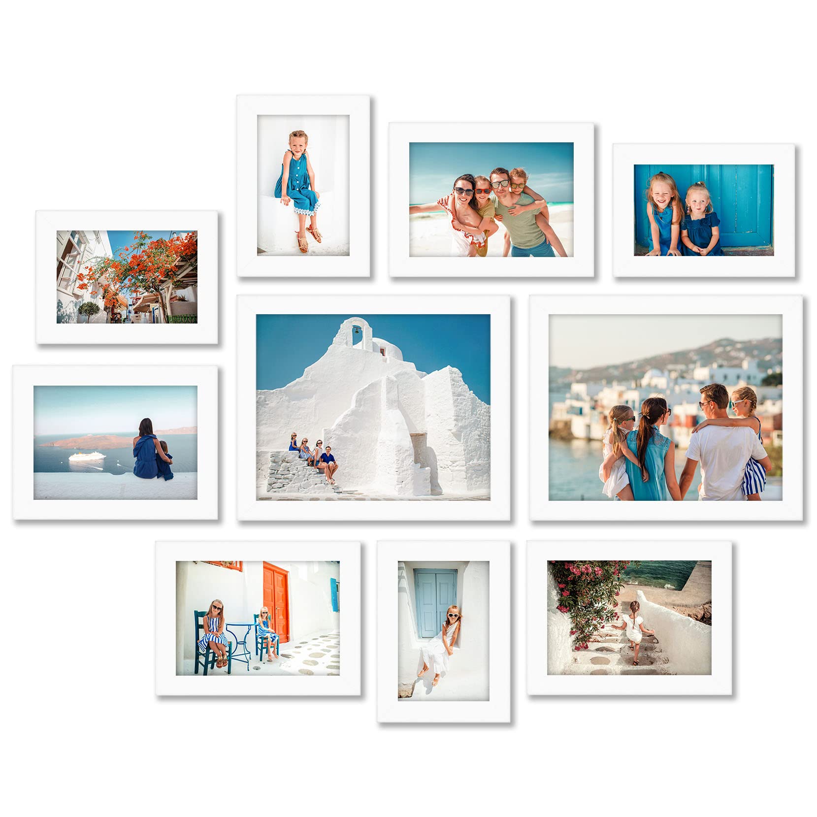 10 Piece White lery Wall Picture Frame Set with Two 8x10; Four 5x7; and Four 4x6.Shatter-Resistant Gl; Picture Frames For Wall or Desk Hanging Hardware and Easel Stands Included