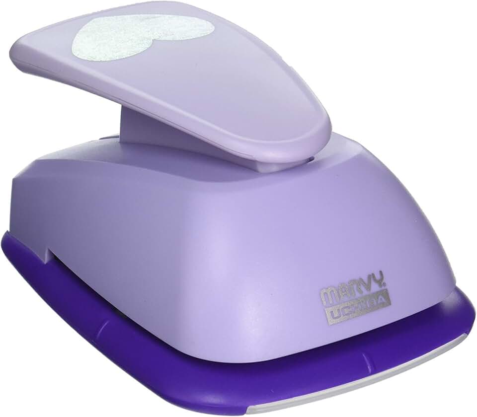 The Uchida Marvy Clever Lever Giga Craft Punch in the shape of a heart is a manual tool designed for crafting projects. It features a lever mechanism that makes punching out shapes easy and precise. The punch is suitable for creating decorative elements from paper for scrapbooking, card making, and other paper crafts. Its sturdy construction ensures durability and consistent results. The compact size allows for easy handling and storage. This punch is ideal for adding detailed heart shapes to various craft projects, enhancing their visual appeal.
