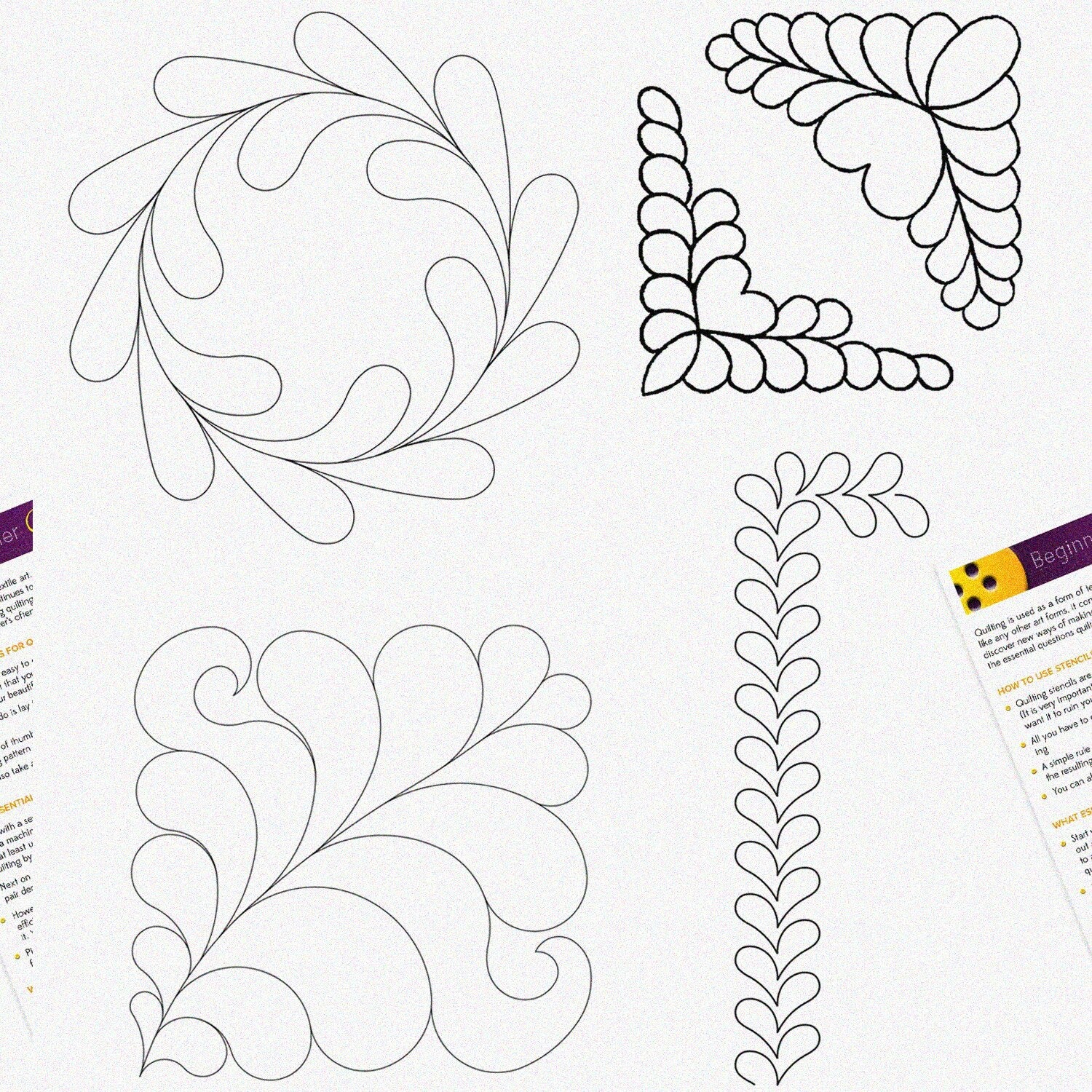 This 4-piece stencil set features borders, patterns, and antique designs suitable for both machine and hand quilting. The stencils are made from flexible semi-transparent plastic, allowing for easy tracing of specific designs and patterns. Their well-defined grooves facilitate effortless tracing, making them ideal for quilters of all skill levels. Beyond quilting, these reusable stencils are versatile tools for tracing designs on smooth surfaces such as walls, curtains, furniture, leather, and clothing. They are also useful for scrapbooking, journaling, and various craft projects. The set includes a laminated guide to assist beginners in achieving accurate and beautiful results. Whether enhancing quilting projects or adding decorative touches to other creative endeavors, these stencils provide a practical and reusable solution for detailed design work.