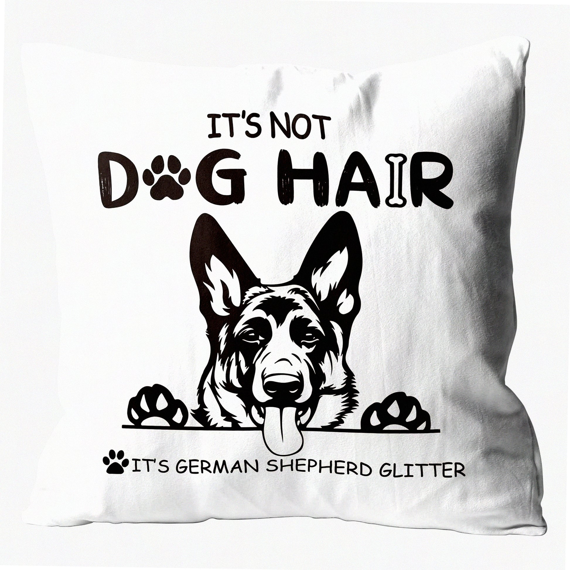 Throw pillow covers designed for dog lovers, specifically featuring a German Shepherd theme, offer practical benefits such as adding a personalized touch to home decor. They celebrate the love for German Shepherds humorously by referring to dog hair as "German Shepherd glitter." These covers can enhance the aesthetic appeal of a living space while also serving as a thoughtful gift for dog enthusiasts.