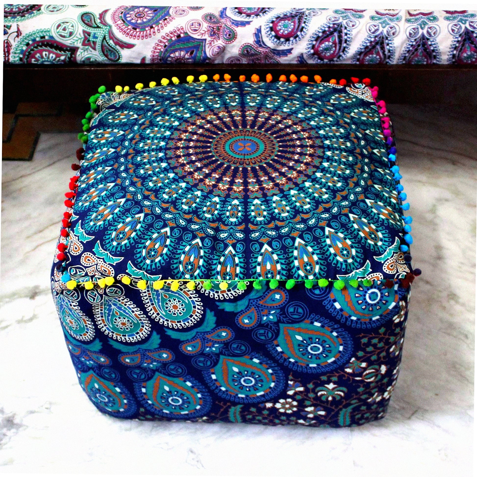 Boho Bliss Meditation Floor Cushion - Square Pillow Seating for Adults, Outdoor Living Room Throw Ottoman Poufs Cover 20X20X14 inches - Blue Sky Zen