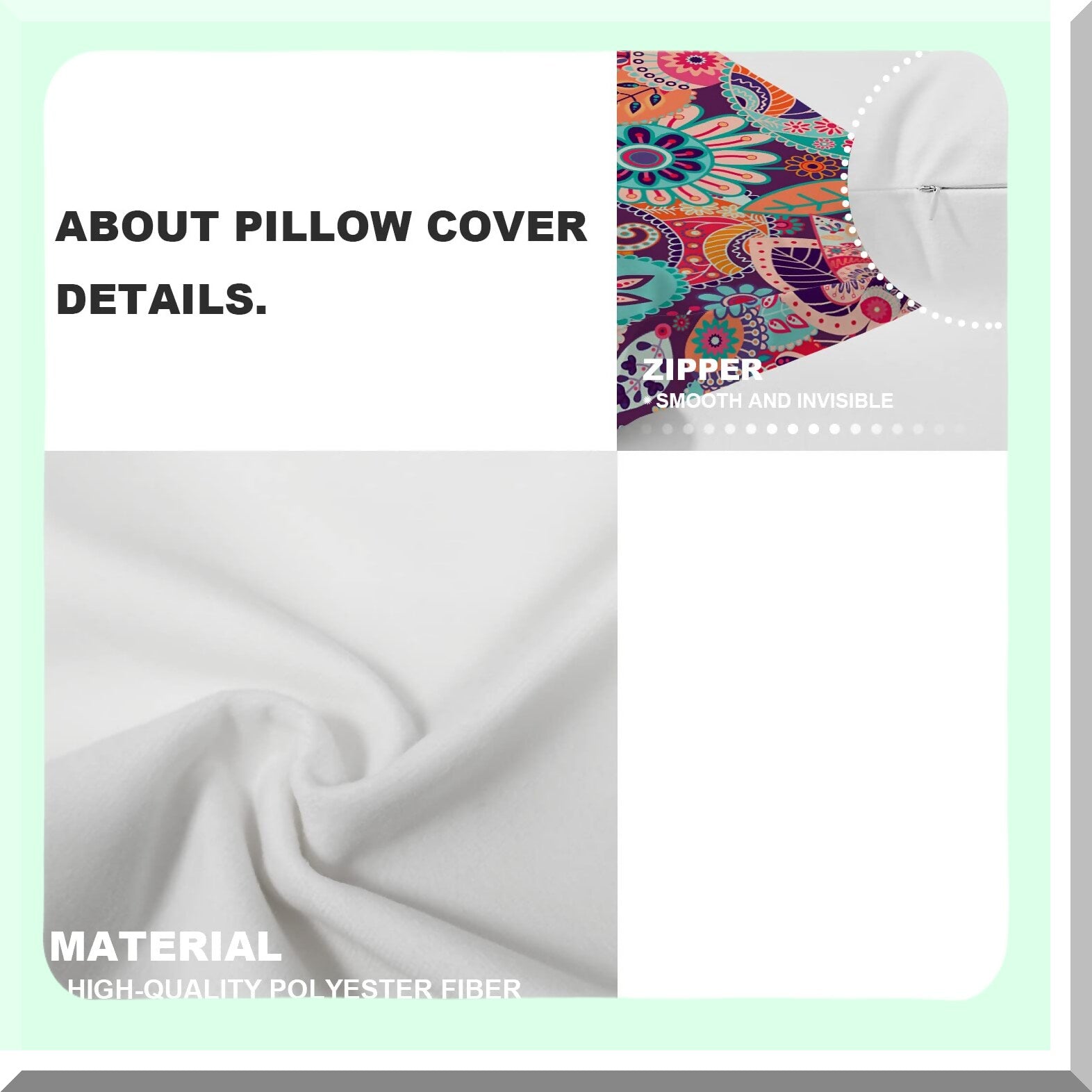Asian Floral Harmony Pillow Covers - Set of 2, Red Paisley & Colorful Flowers Pattern, Ethnic Cushion Case for Sofa & Bedroom, 20x20 inches Square
