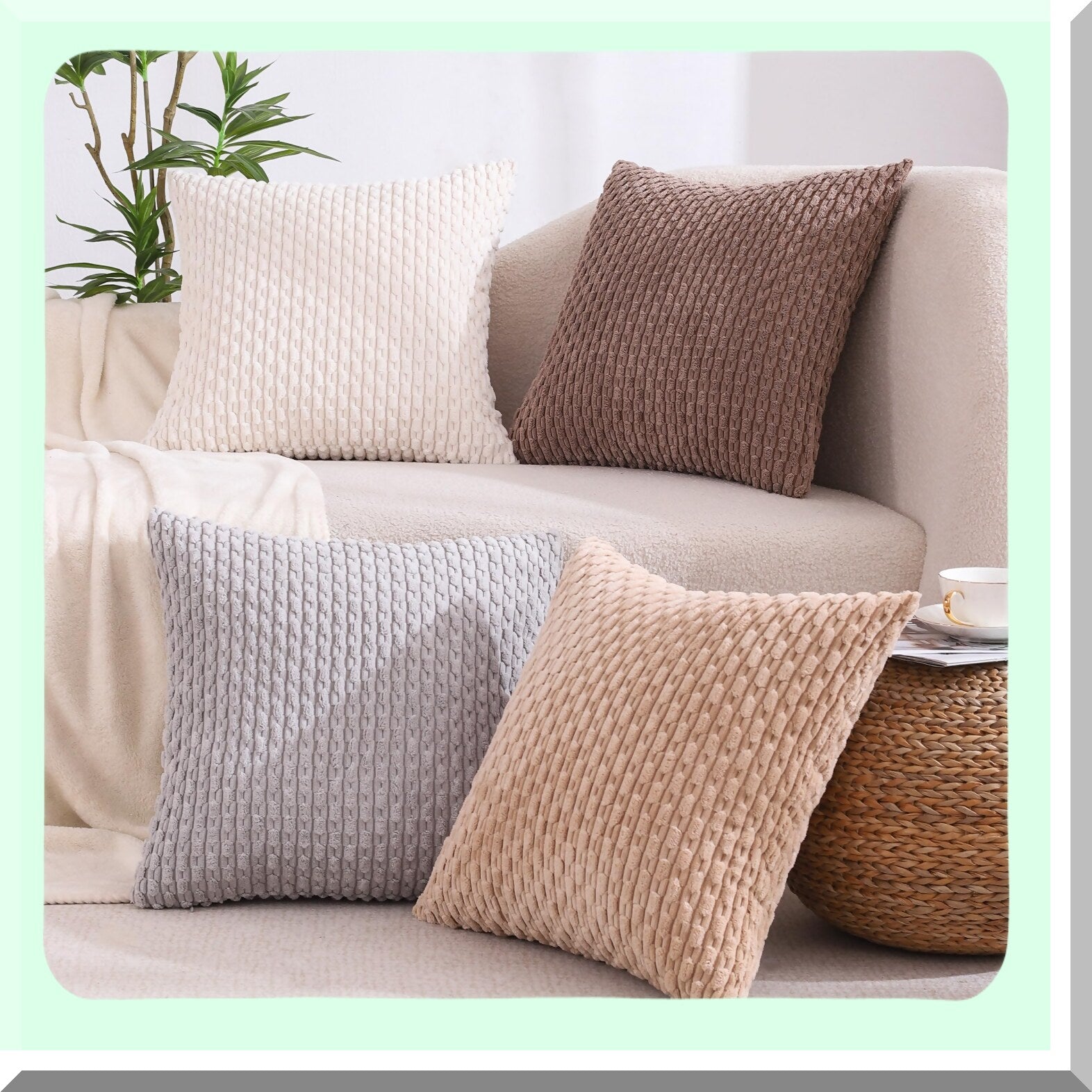 Boho Farmhouse Corduroy Pillow Covers - Set of 4 Rustic Cushion Cases for Home Decor, Sofa, Living Room, Bed - 18x18 Square Throw Pillows for Spring