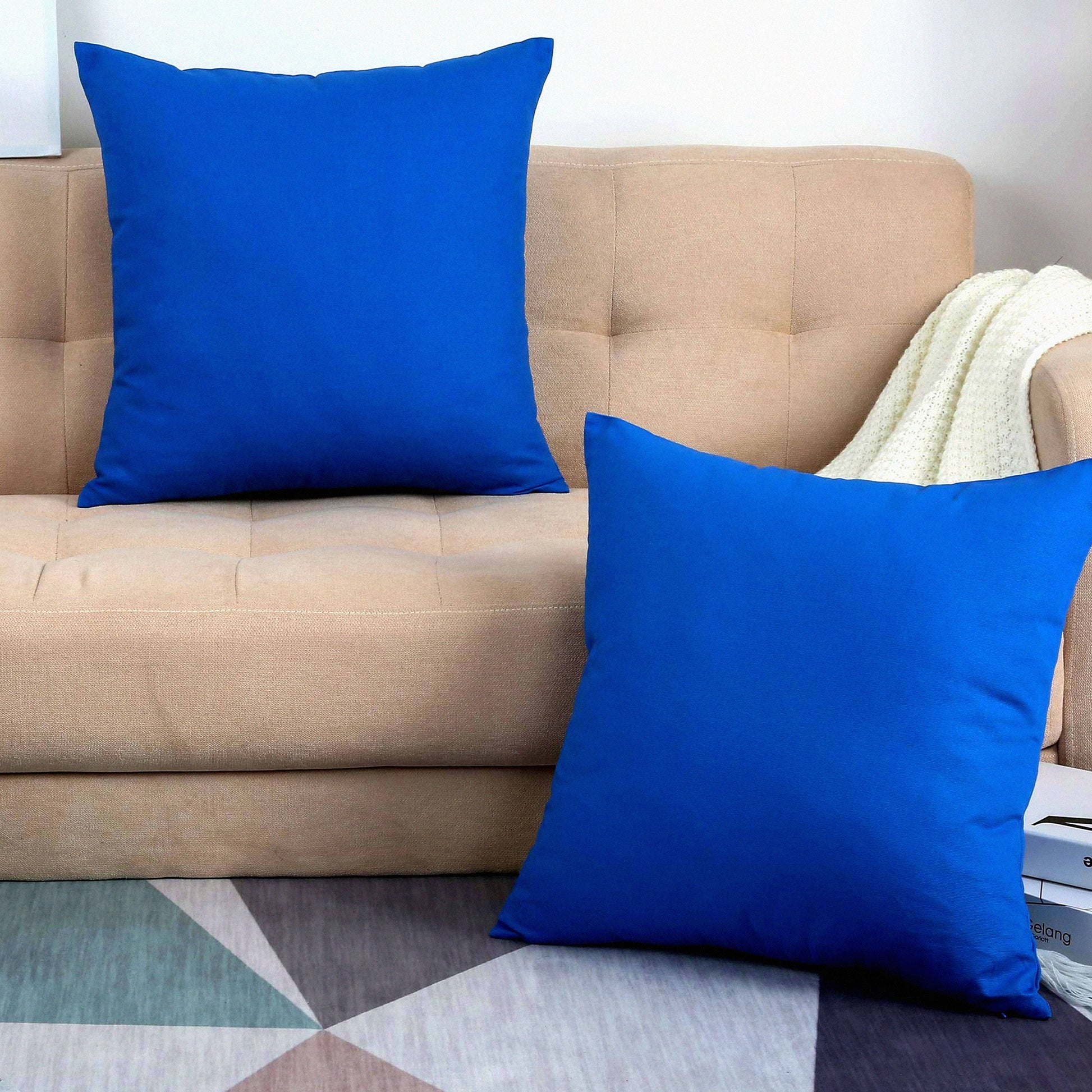 Colorful Cotton Canvas Pillow Covers - Set of 2, 16x16 Inches, Decorative Cushion Covers in Bright Royal Blue - 100% Cotton, 45 Color Options