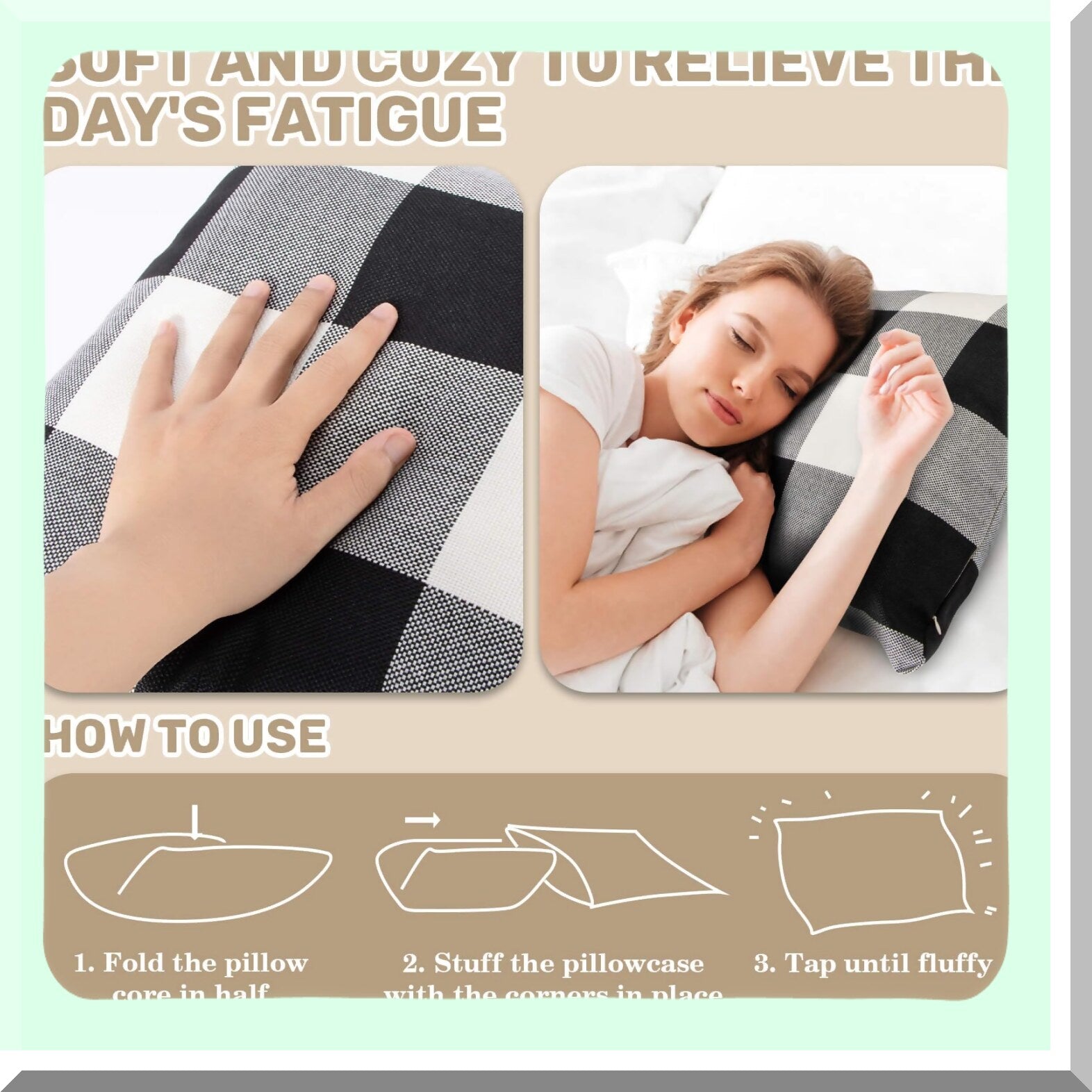 Buffalo Check Plaid Pillowcase Set - 18x18 Inch Checked Cushion Covers for Home Decor - Sofa, Bench, Bed - 2 Pack Throw Pillow Covers
