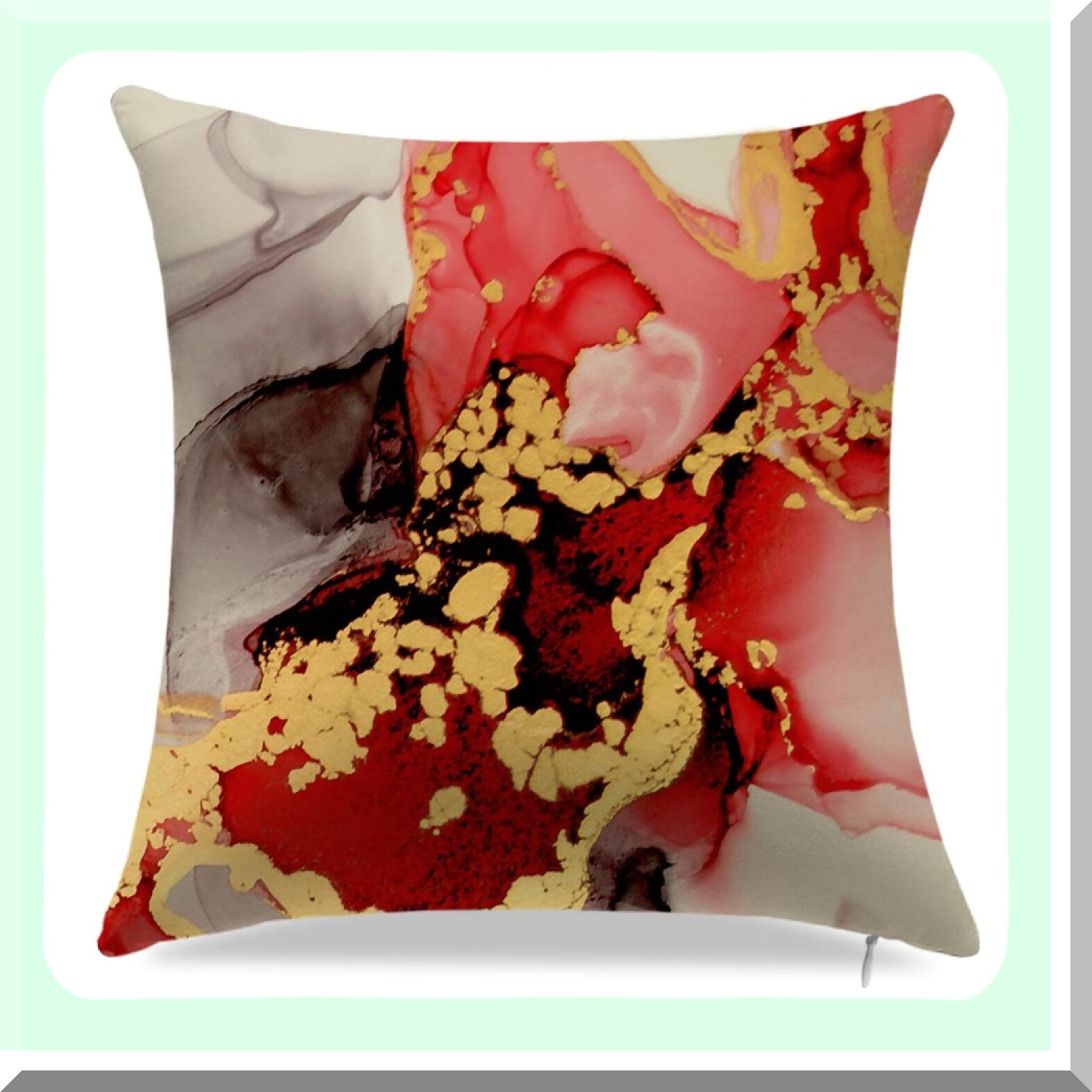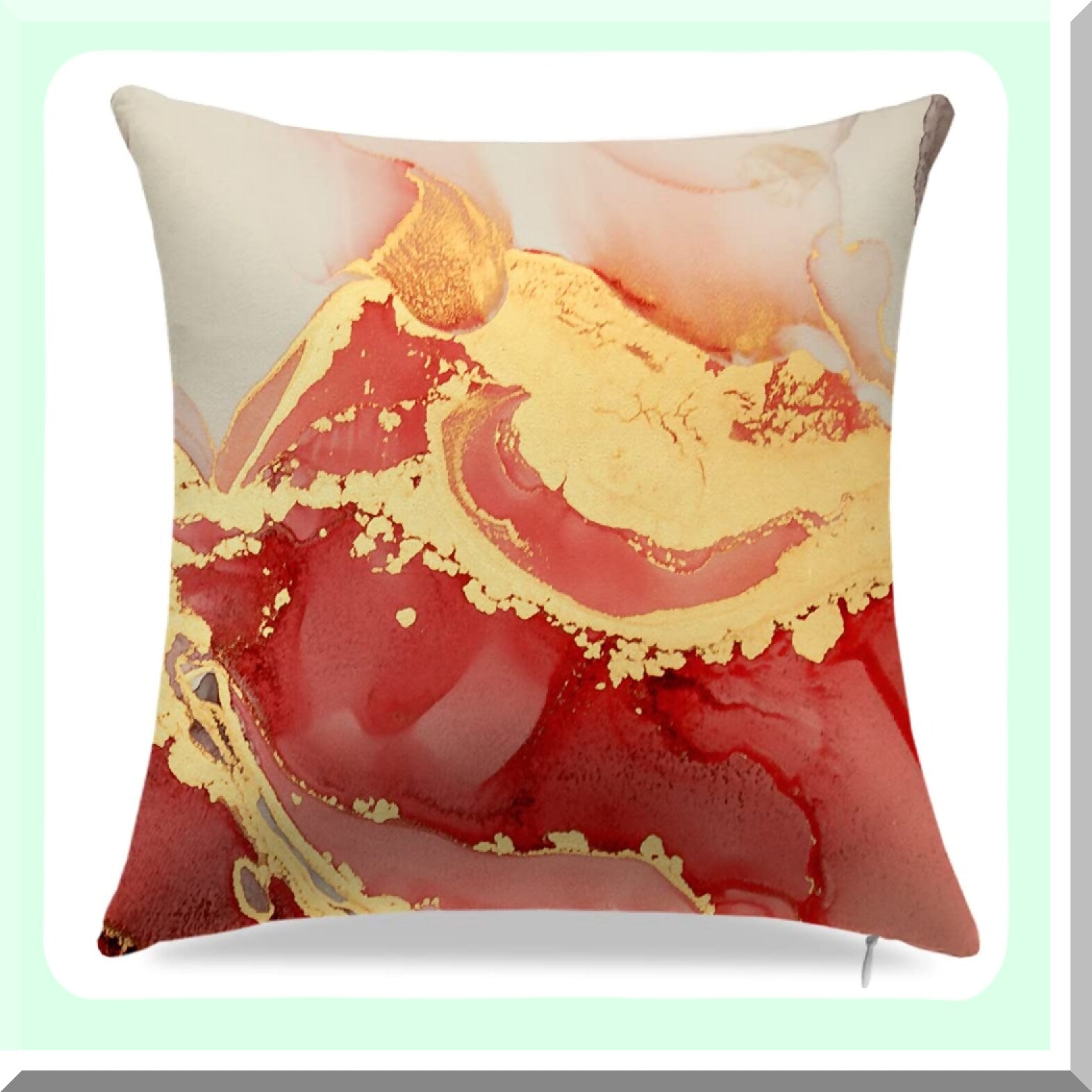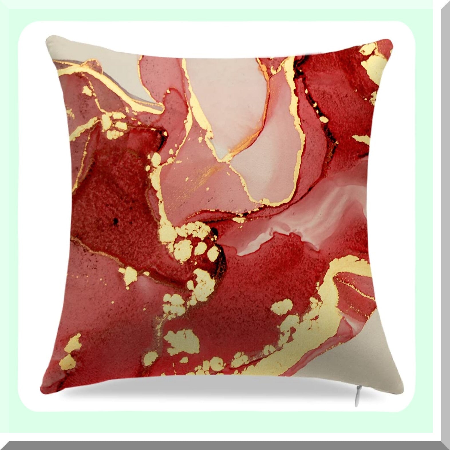 Abstract Marble Texture Decorative Pillow Covers - Set of 4, Red & Gold Modern Throw Pillow Cases for Living Room, Couch, Bed - 18" x 18" BF-4