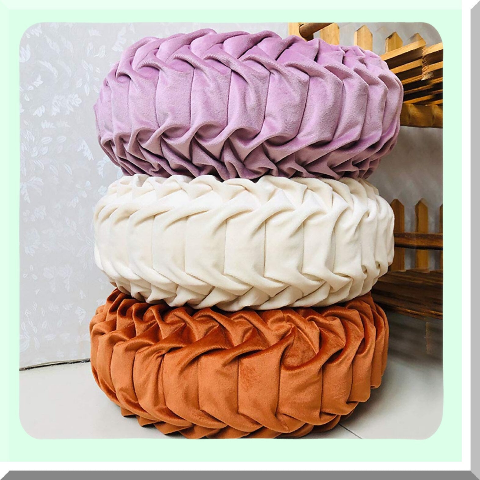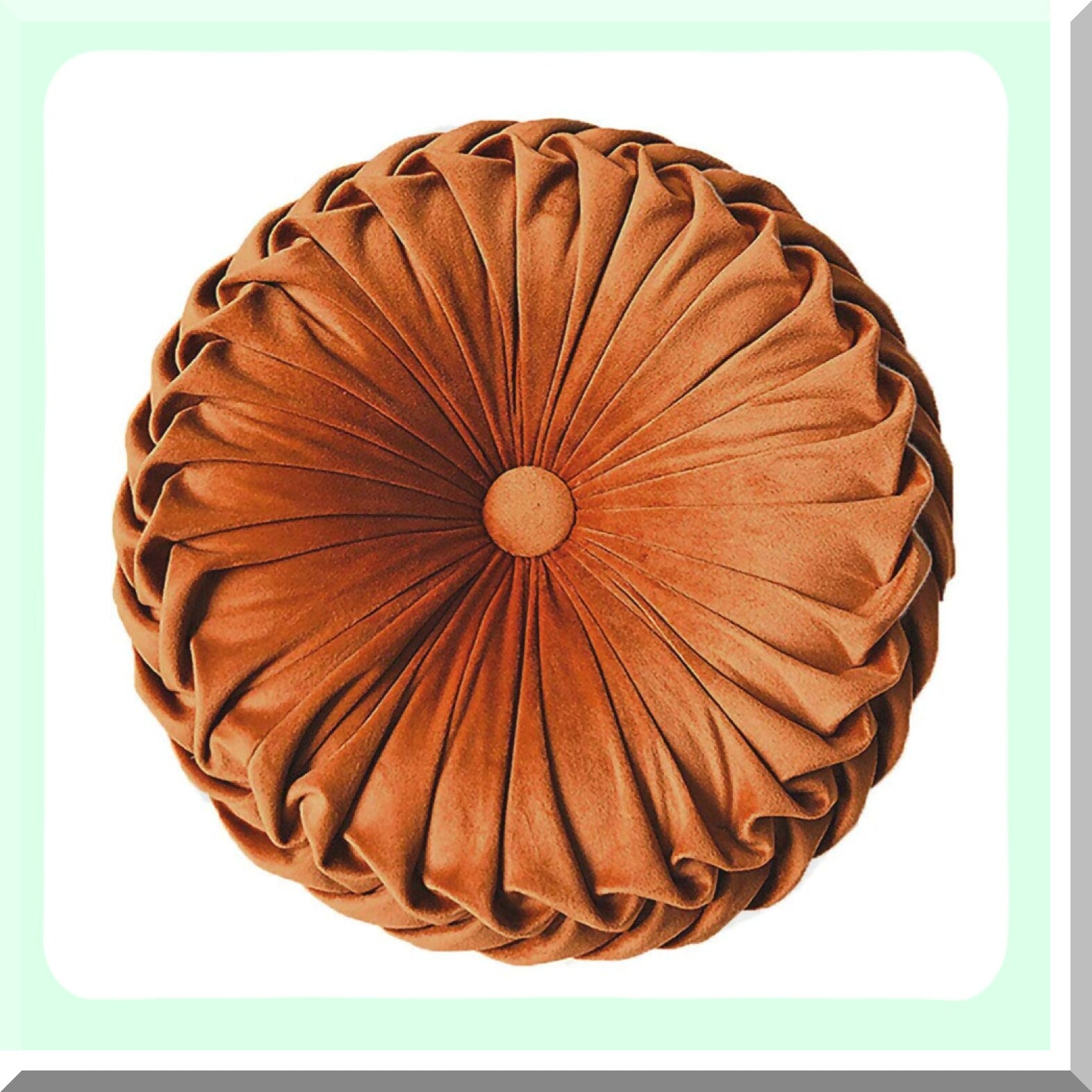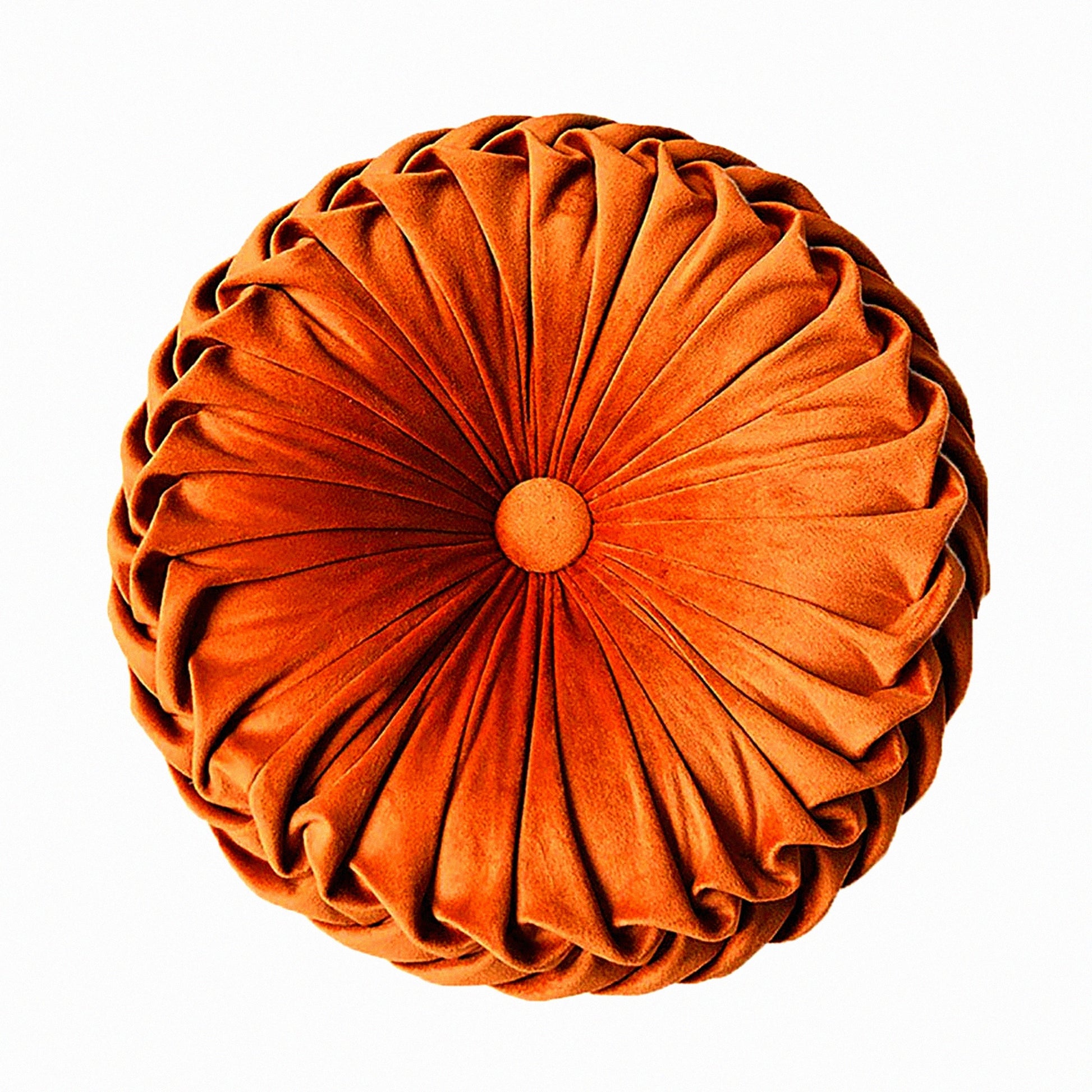 Velvet Pleated Round Cushion - Orange Dream - Home Decor Throw Pillow for Couch, Chair, Bed, Car - Luxurious Round Pillow Decoration