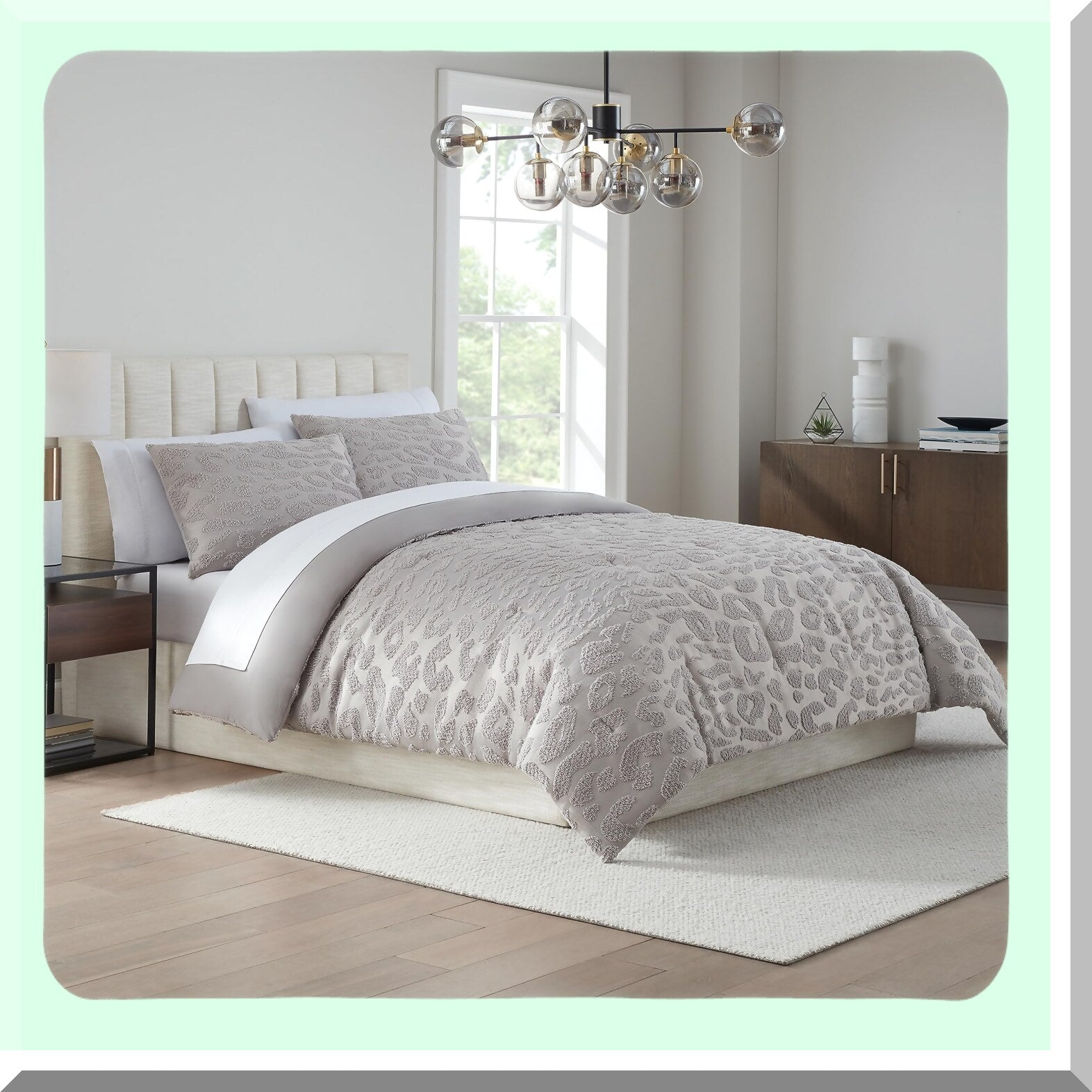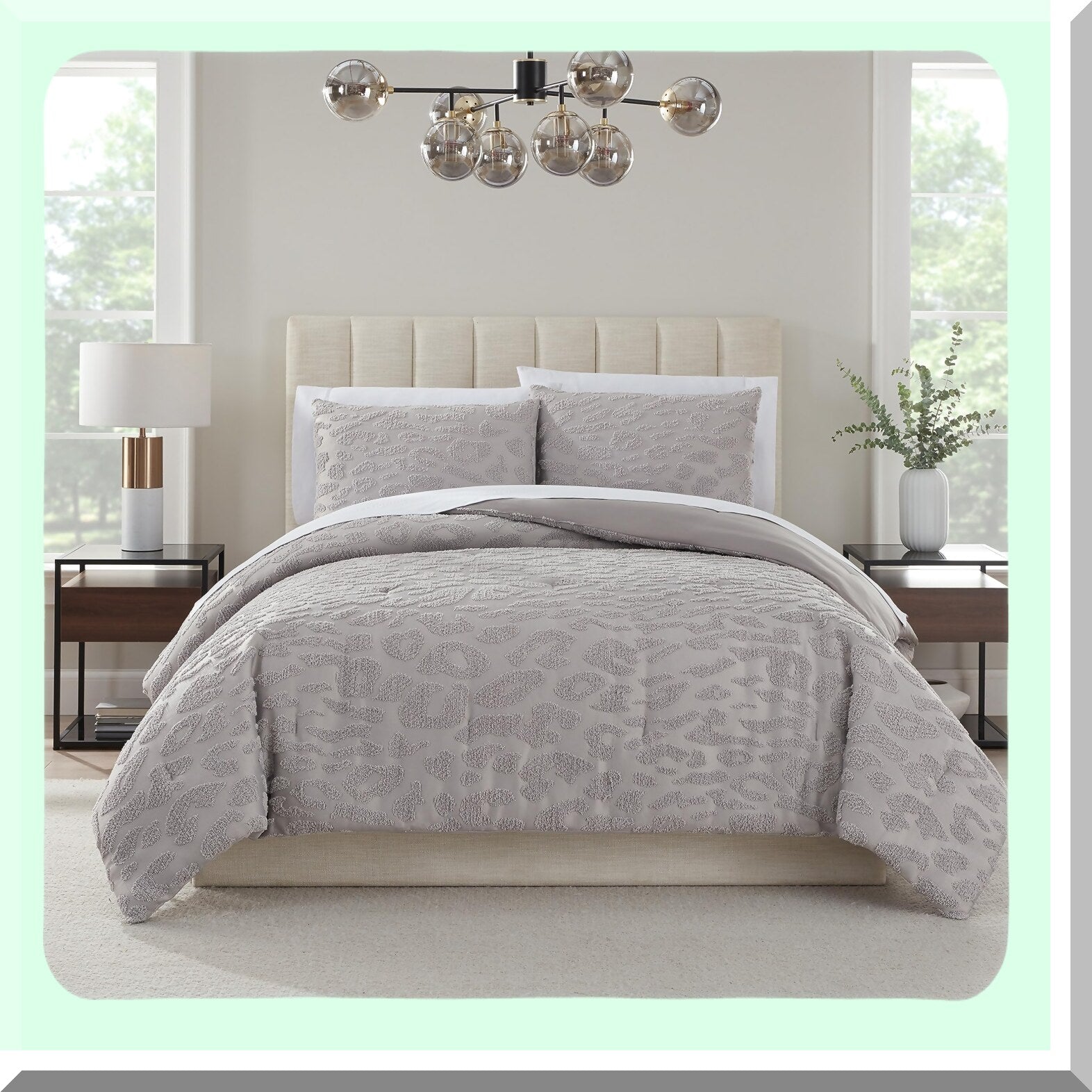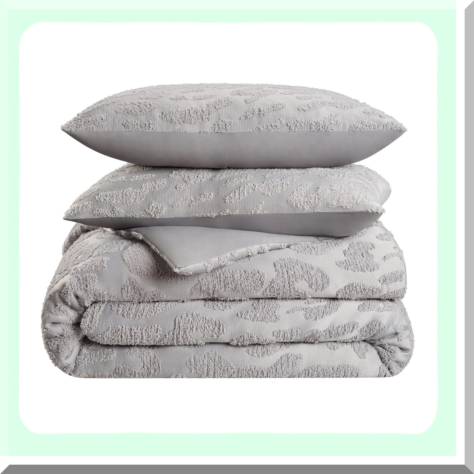 Leopard Luxe 3-Piece Comforter Set - Plush Tufted Texture Bedding with Queen Comforter & Pillow Shams - All Season Grey Bedroom Decor