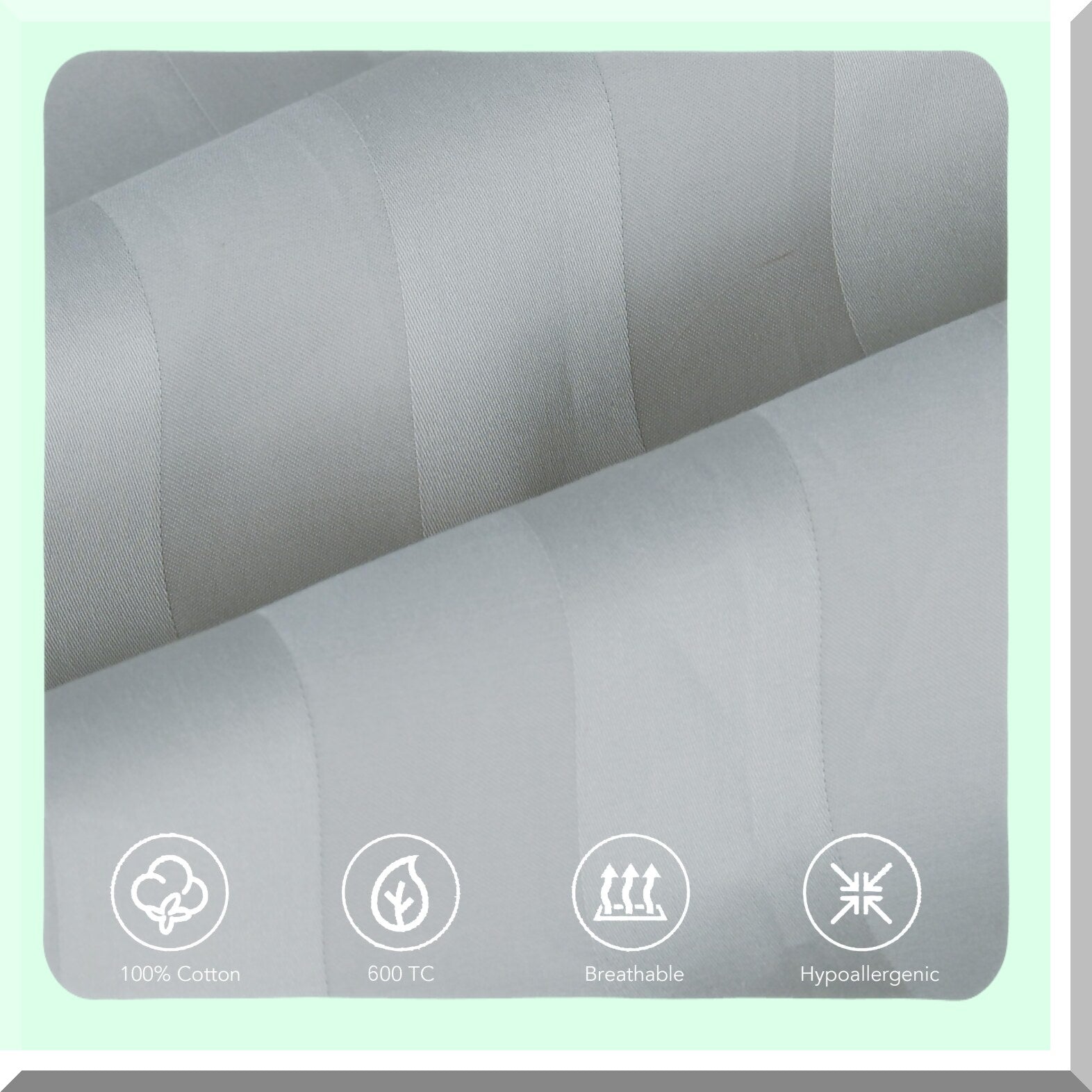 CoolCotton PillowGuard Set - 600TC Zippered Pillow Cases, Sateen Weave, Quiet & Breathable, Easy Care - 4PCS Striped Gray - Size Bed Pillow Protectors