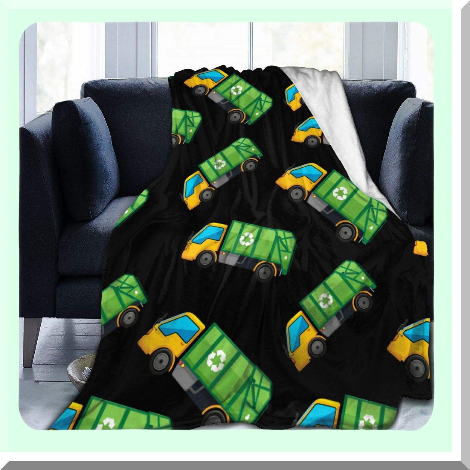 Cartoon Garbage Truck Cozy Flannel Fleece Blanket - Ultra Soft, Lightweight, All-Season Warmth for Living Room/Bedroom
