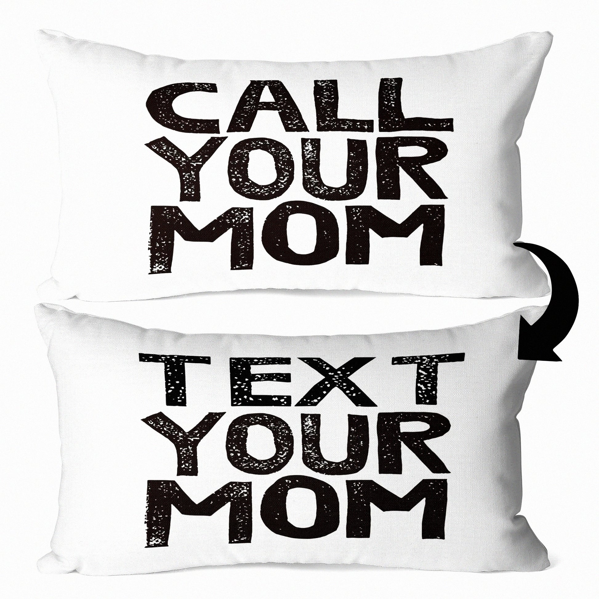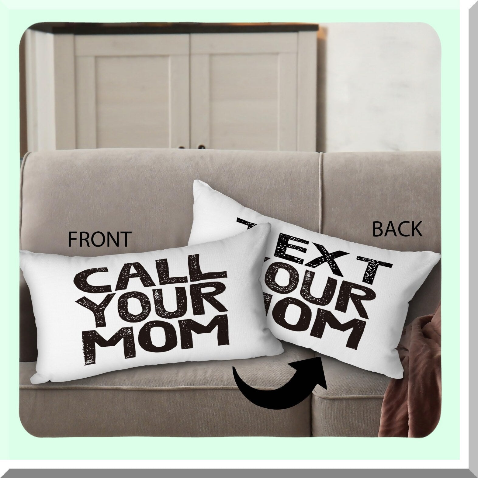 Funny Mom Text Reversible Throw Pillow - Daughter Son Gifts Dorm Room Accessories Graduation Party 12x20 Linen Cushion Cover Freshman Gift