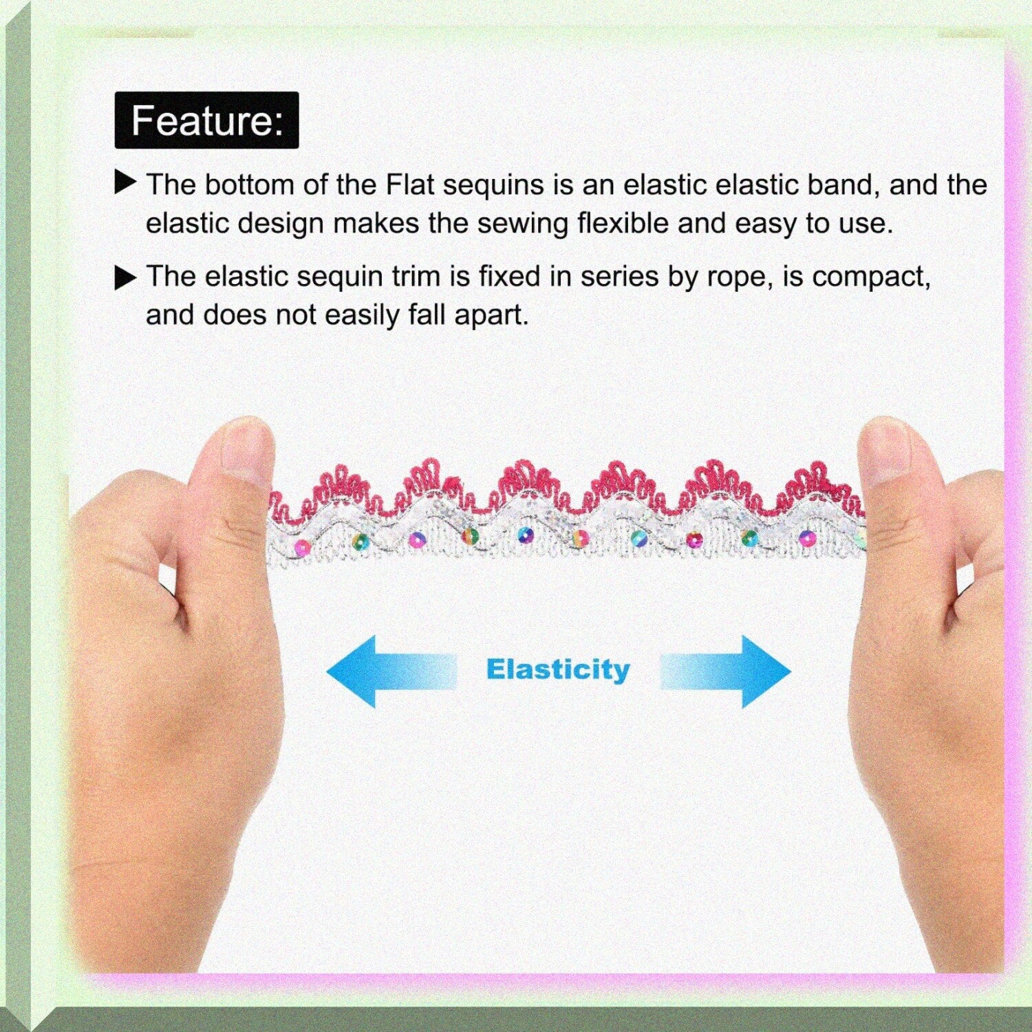 This sequin trim features a 1.5-inch width and measures 10 yards in length, crafted from PVC with a rose red and silver color. The sequins are woven into a braided thread using a special process, making the trim compact and durable, resistant to fading, and washable. It is ideal for DIY sewing projects, allowing you to create unique patterns for clothing, hats, scarves, and accessories, adding eye-catching designs. The trim can also be used for decorating holiday clothes, traditional costumes, curtains, and other fabric items. Additionally, it is suitable for scrapbooking and card making. To use, simply cut the desired length with scissors and sew it onto your project with a sewing machine. Please confirm the size needed before purchasing. This versatile beaded lace trim offers a creative way to enhance various craft and fashion projects with its attractive sequin embellishments.