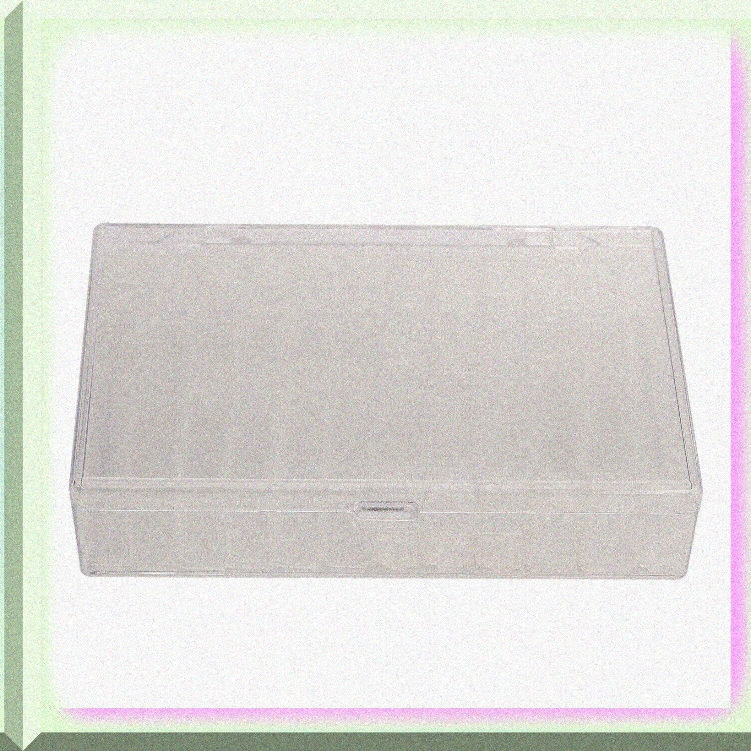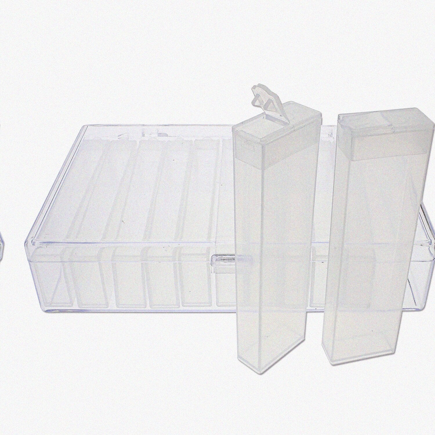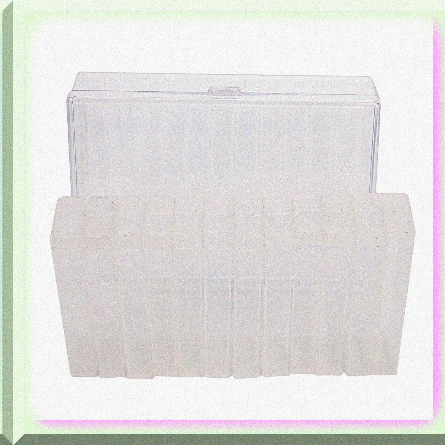 This storage organizer features a collection of 12 clear flip top boxes, each measuring 1 x 3.75 inches, housed within a sturdy plastic case measuring 6.25 x 4 x 1.4 inches. The transparent design allows for easy visibility of contents, making organization simple and efficient. The flip top lids provide secure closure and controlled pouring, ideal for storing small items such as beads, findings, components, string, and needles. The compact size makes it suitable for various uses, including jewelry making, arts and crafts, sewing, and small hardware storage like nails, screws, and bolts. It is also useful for organizing toy pieces or nail art supplies. The durable plastic construction ensures longevity, while the sleek design keeps everything neatly contained. Whether for personal projects or professional use, this versatile storage system helps keep small items organized and accessible in a compact, portable case.