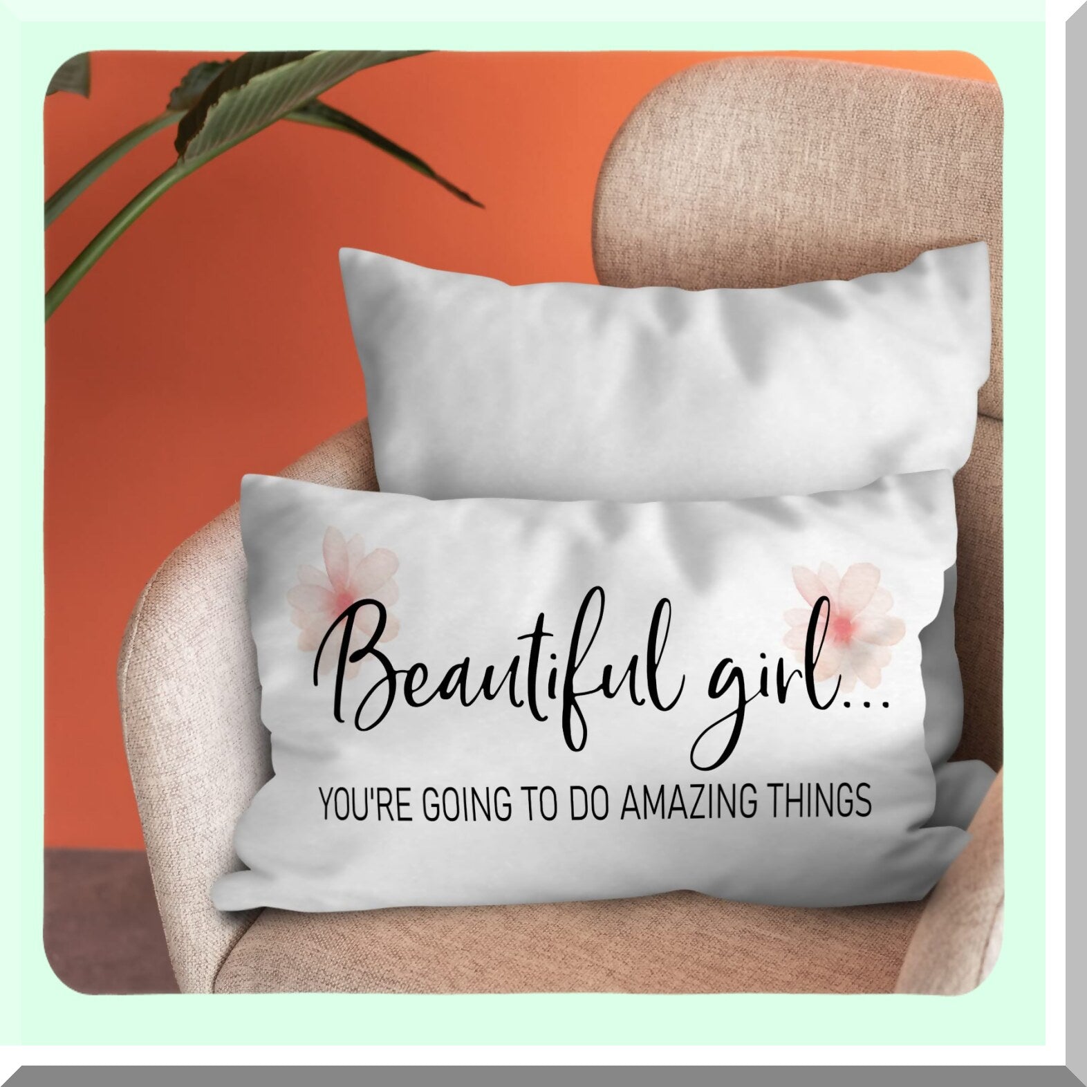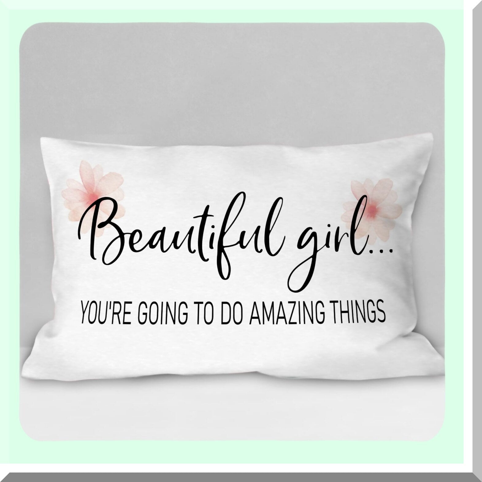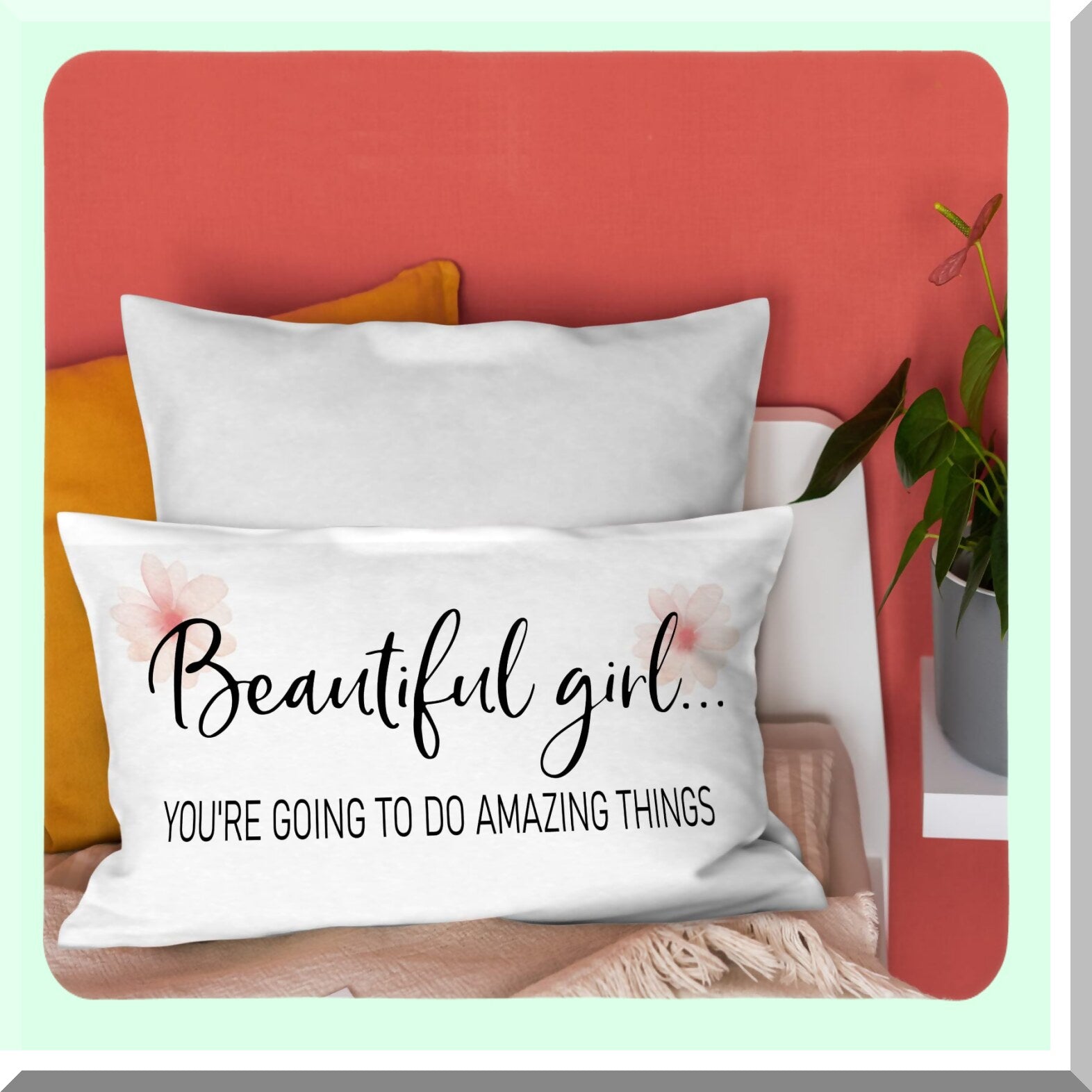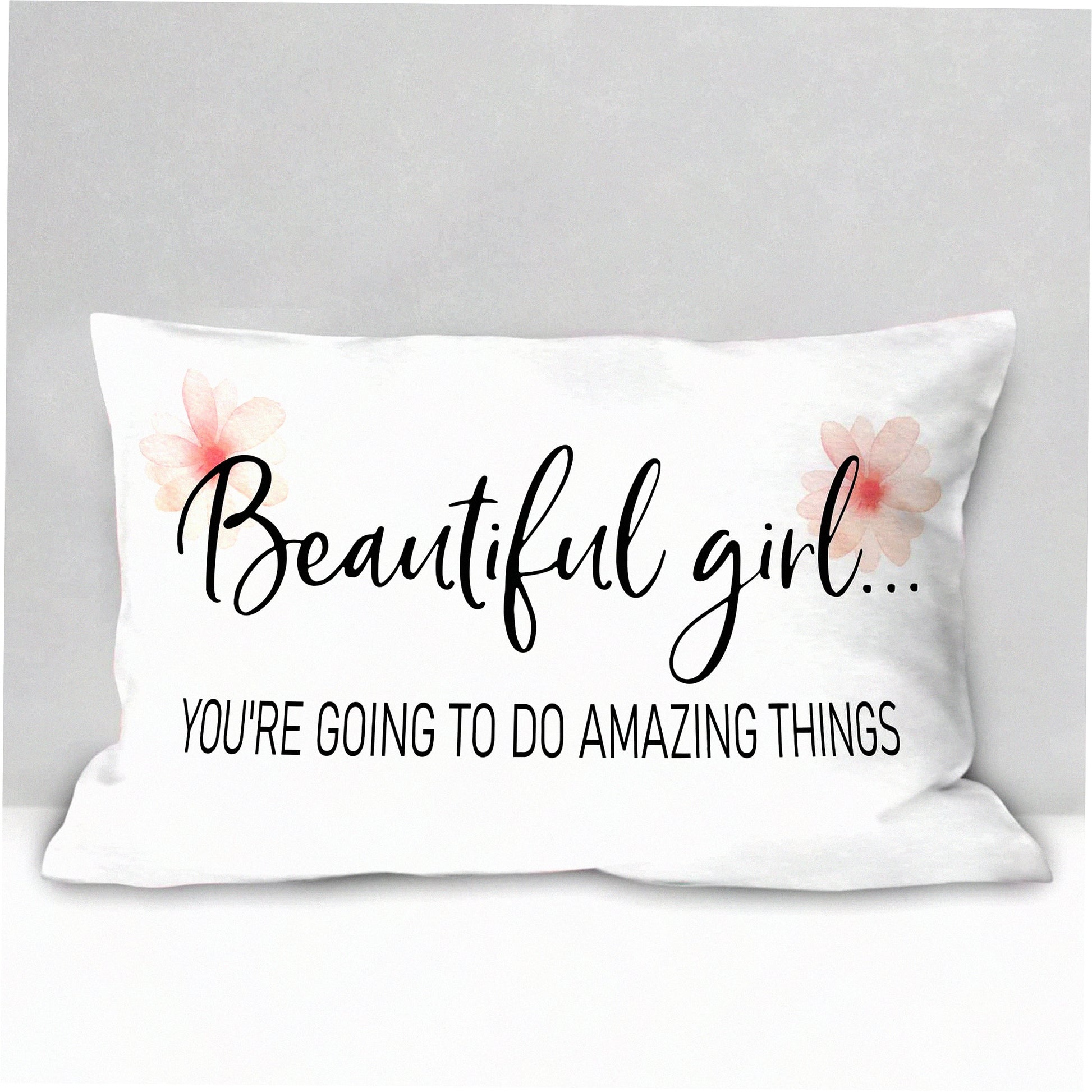 Amazing Things Soft Throw Pillow Cover - Motivational Quotes Decor for Girls Room & Living Room Sofa - Beautiful Girl Quotes Decorative Pillowcase (12 x 20 Inch)