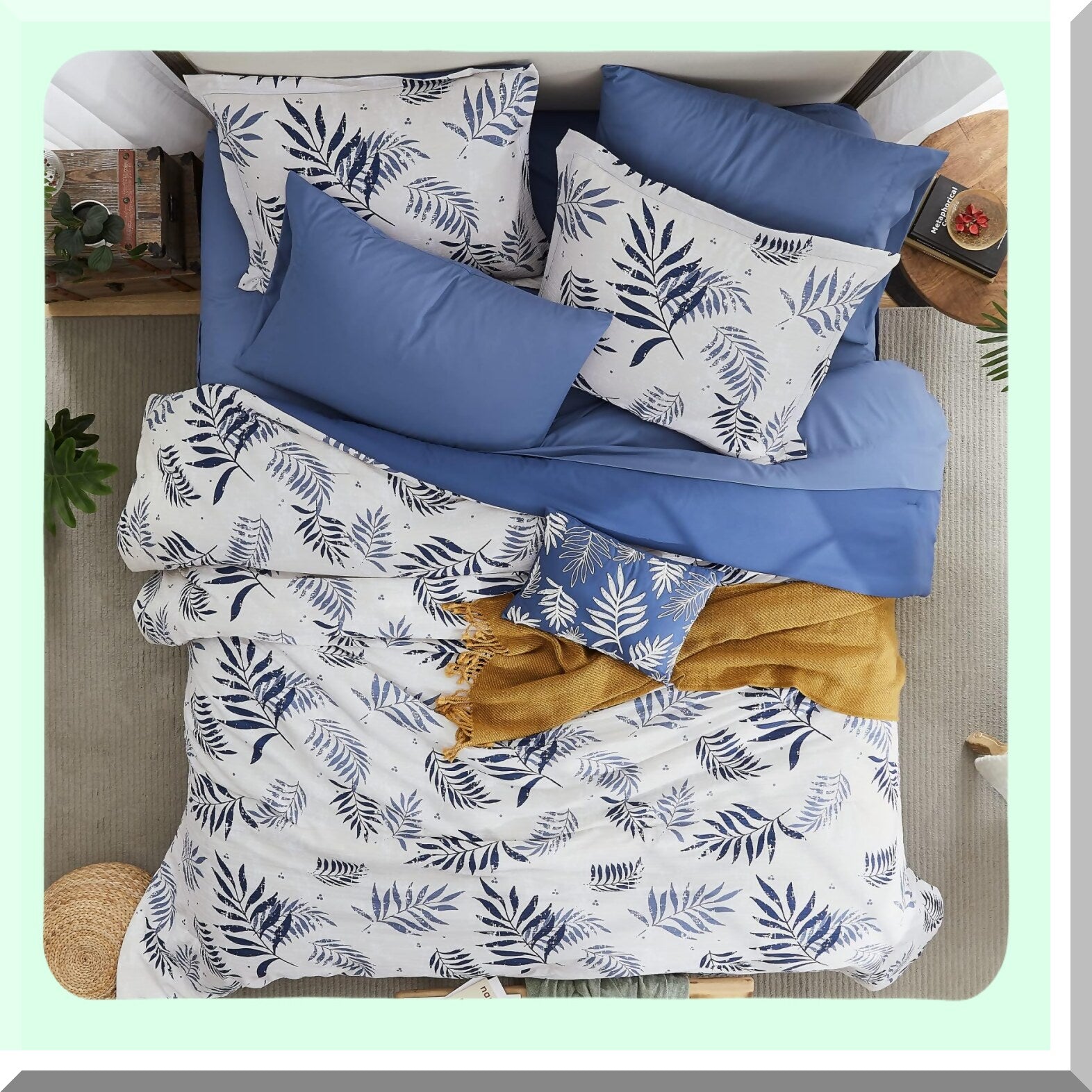 Blue Leaf Textured Comforter Set - Full Size Bedding 8 Piece Bundle with Sheets, Pillowcases, Shams - Soft and Cozy Full Comforter 80"x90"