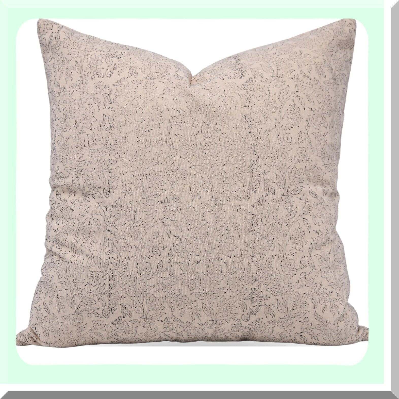 Boho Farmhouse Floral Pillowcase Set - Cotton Block Print Cushion Covers for Sofa & Couch - Outdoor Home Decor - Black Square Throw Pillow Covers 18x18