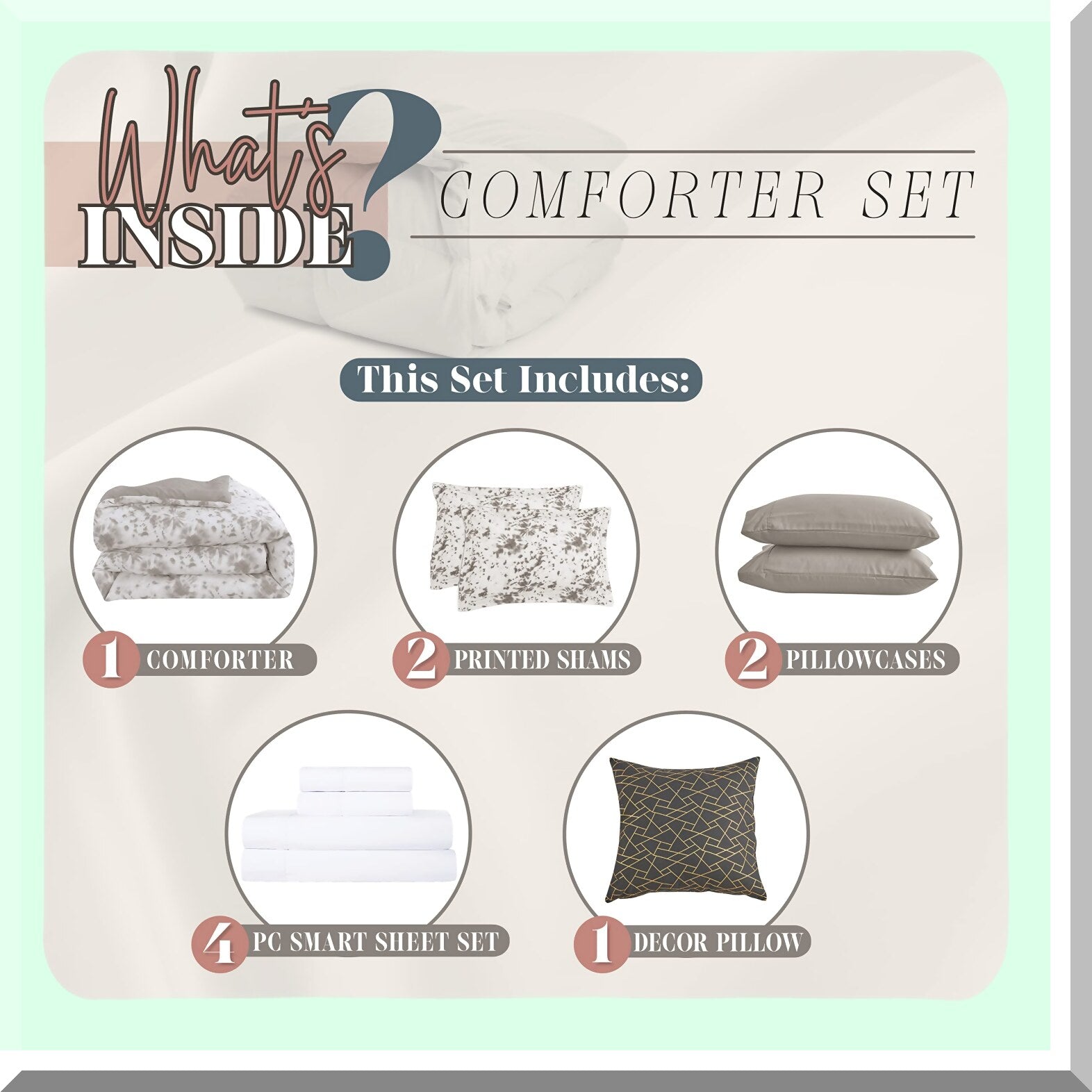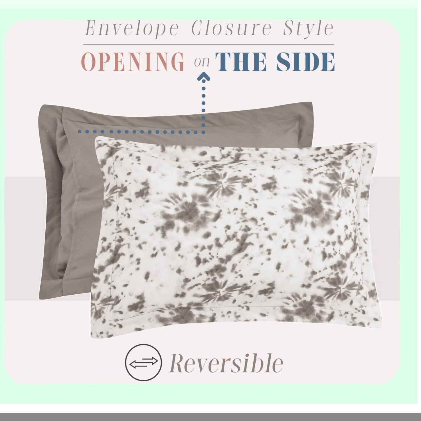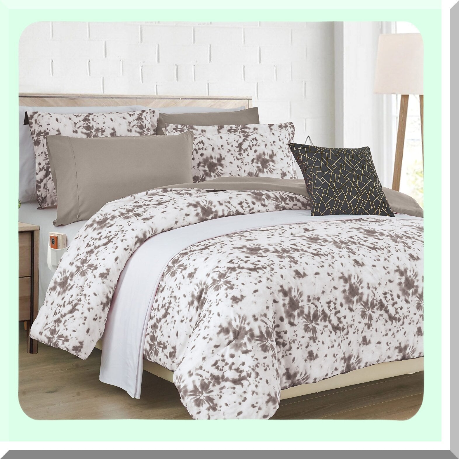 Tie-Dye Dream 10-Piece Comforter Set - Queen Gray - Plush Lightweight Material - Reversible Design - Smart Pockets - Decorative Pillow - Fitted Sheet