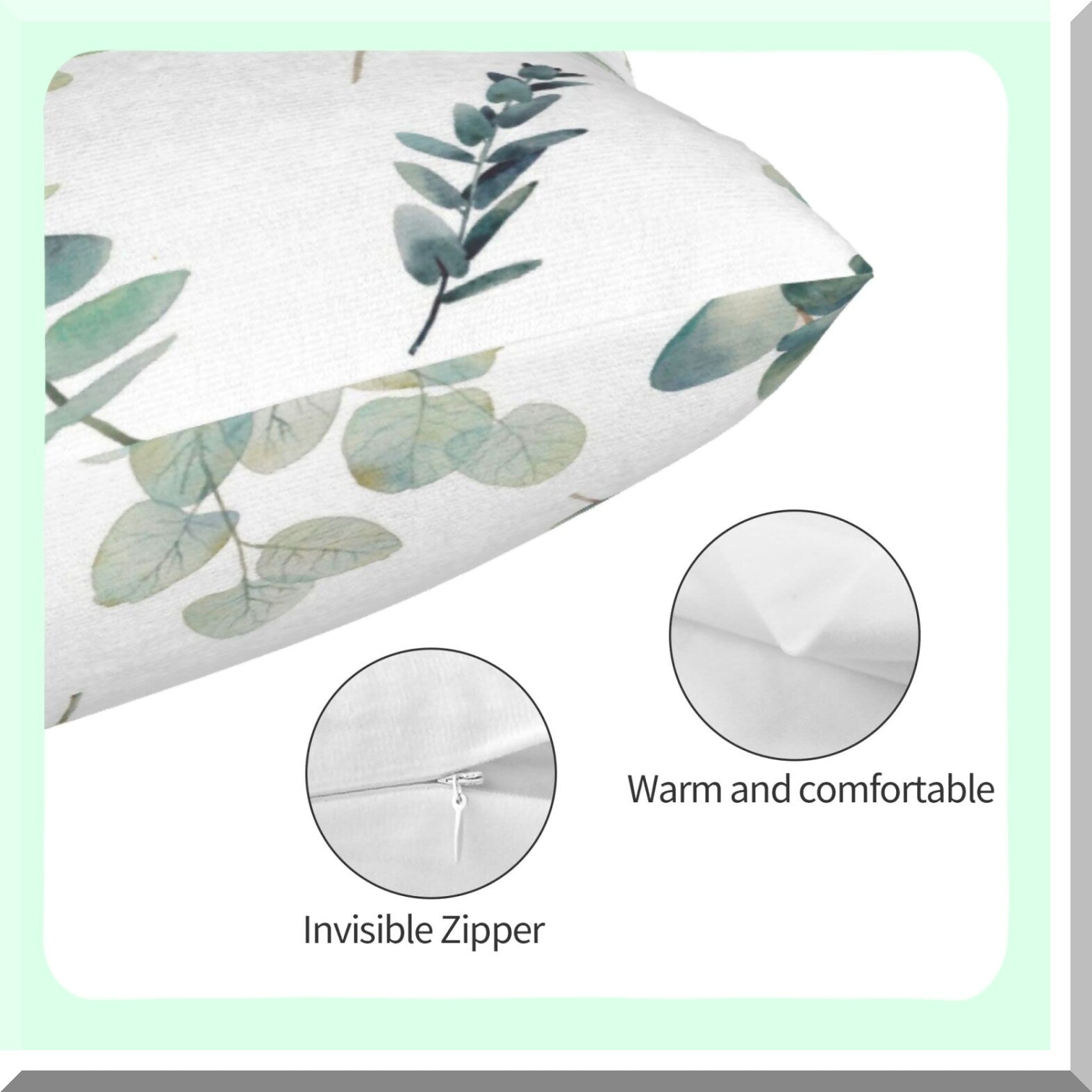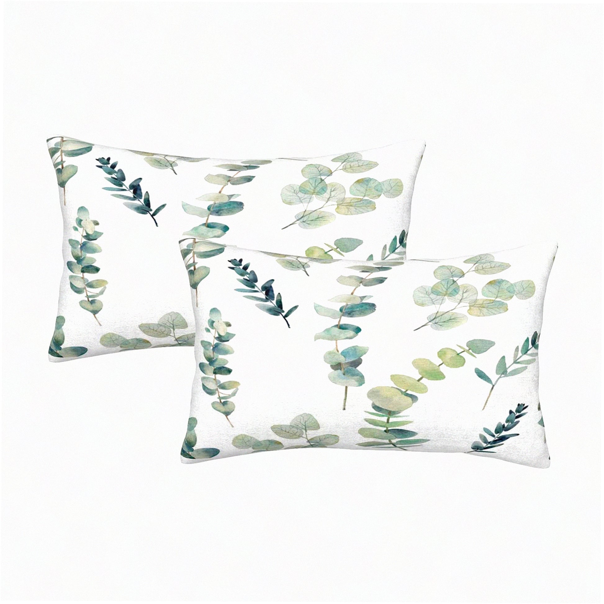 EcoChic Leafy Green Pillow Set - 12x20 Inch Watercolor Eucalyptus Branch Cushion Covers - Seafoam Sage Decorative Throw Pillows for Bedroom Sofa