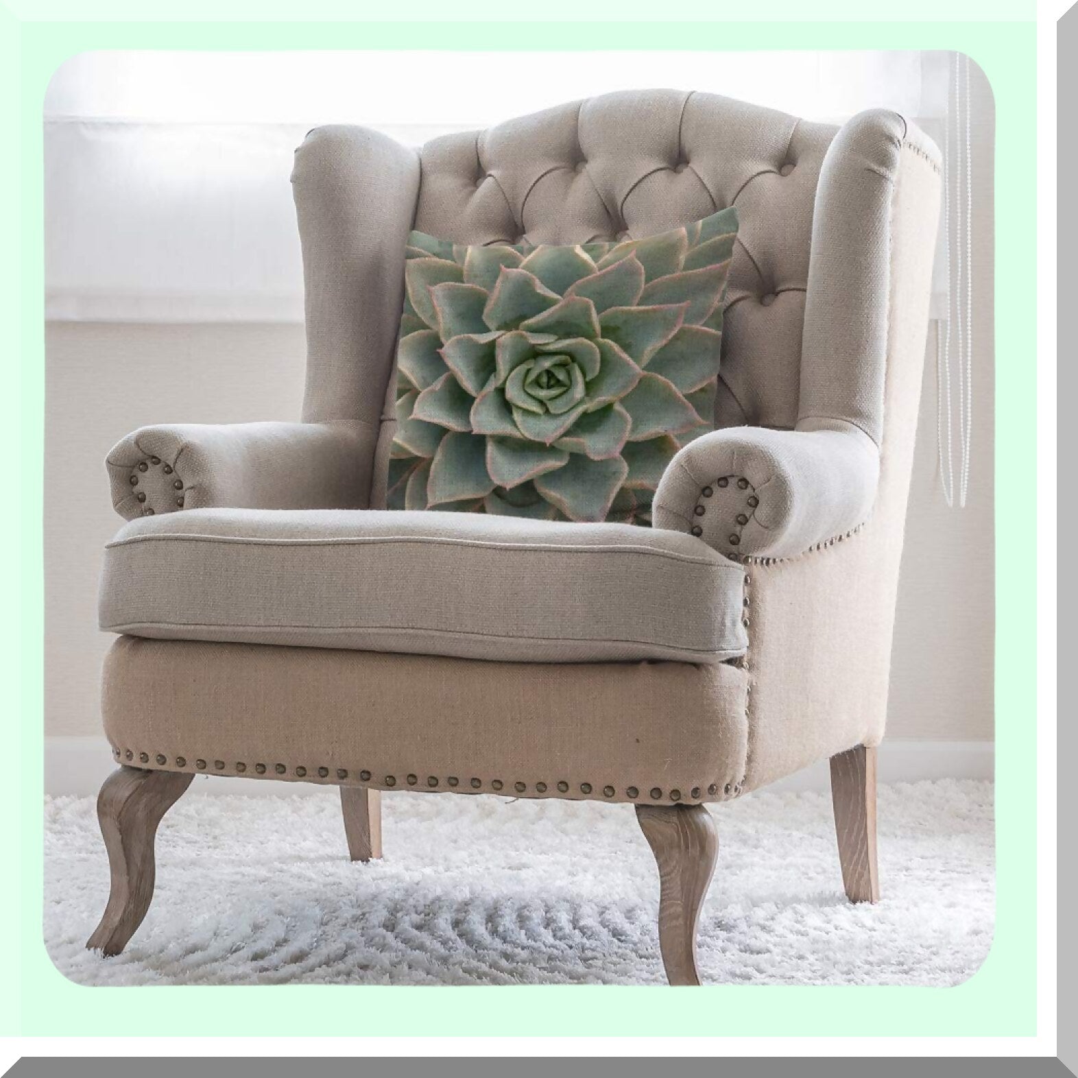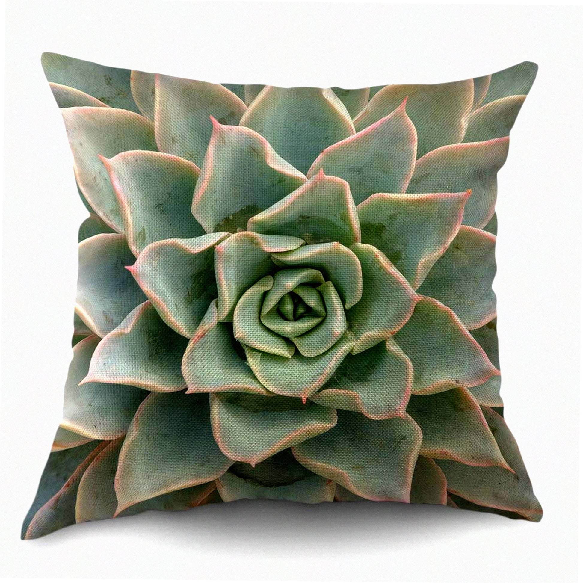 Cactus Bloom Decor Pillow - 18x18 Inch Cotton Linen Cushion Cover - Green Flower Throw Pillow Case for Sofa Bed - Decorative Square Pillows