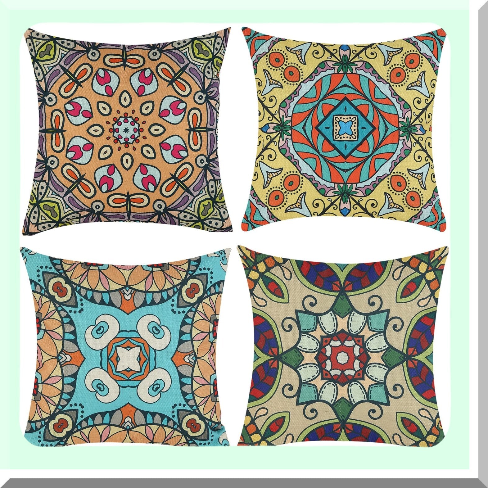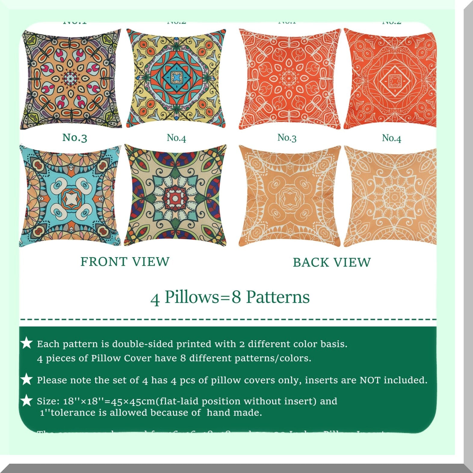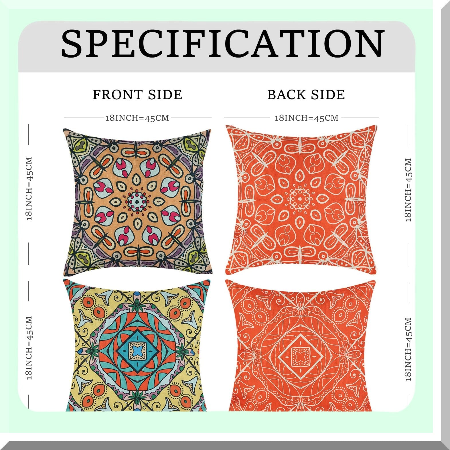 Boho Geometric Fall Pillow Set - 18x18 Inches, Abstract Double Sided Cushion Covers - Orange Decorative Sofa Sham - Linen Couch Decor - Set of 4