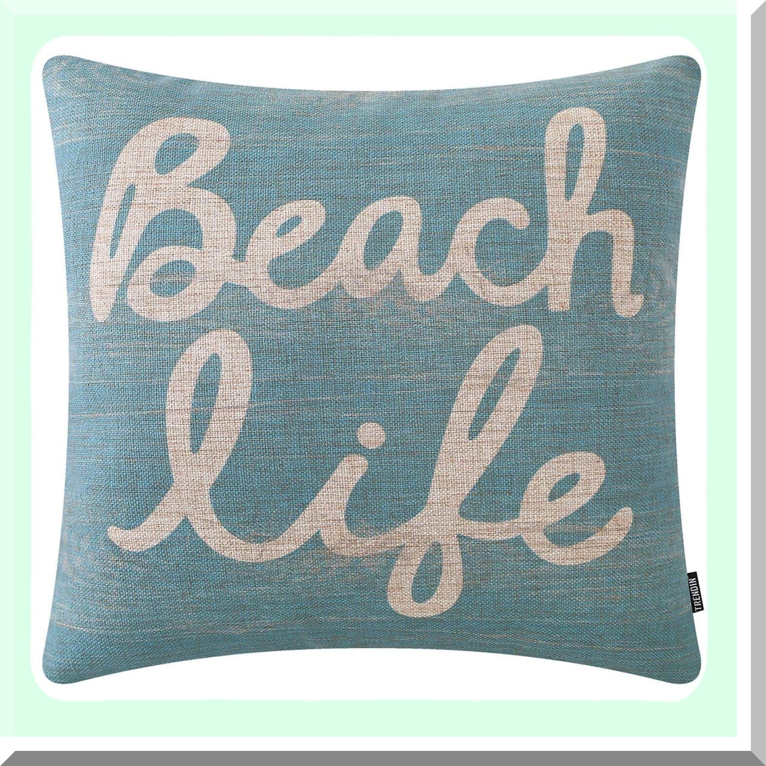Coastal Retreat Wood Grain Blue Throw Pillow Cover - Decorative Cushion Case for Sofa, Couch, Bed, Office, Car - 18x18 inch Square Pillowcase