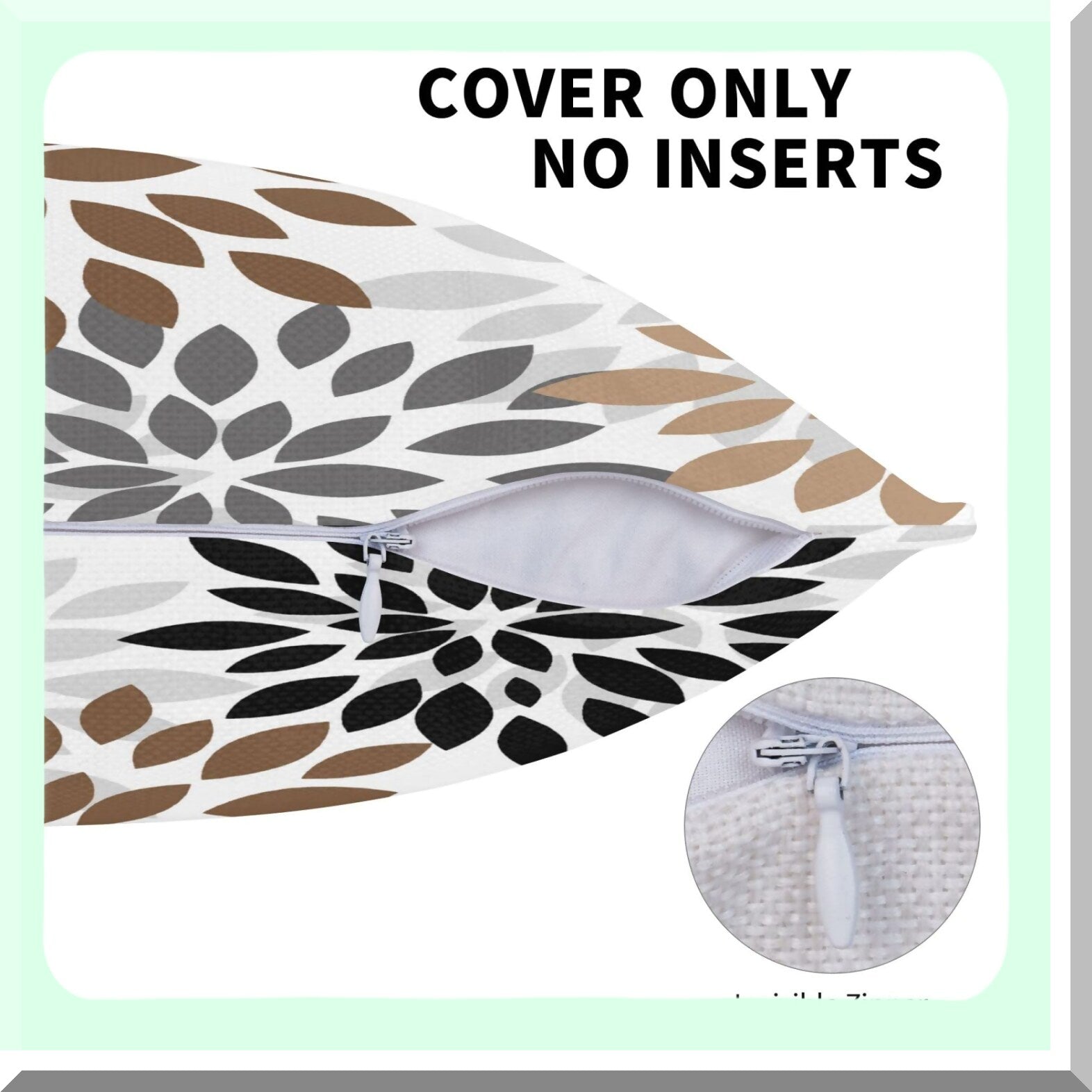 Geometric Dahlia Floral Pillow Covers - Set of 2, Coffee Gray Colored Throw Pillows, 18x18 Inch Summer Outdoor Cushion Cover for Home Decor
