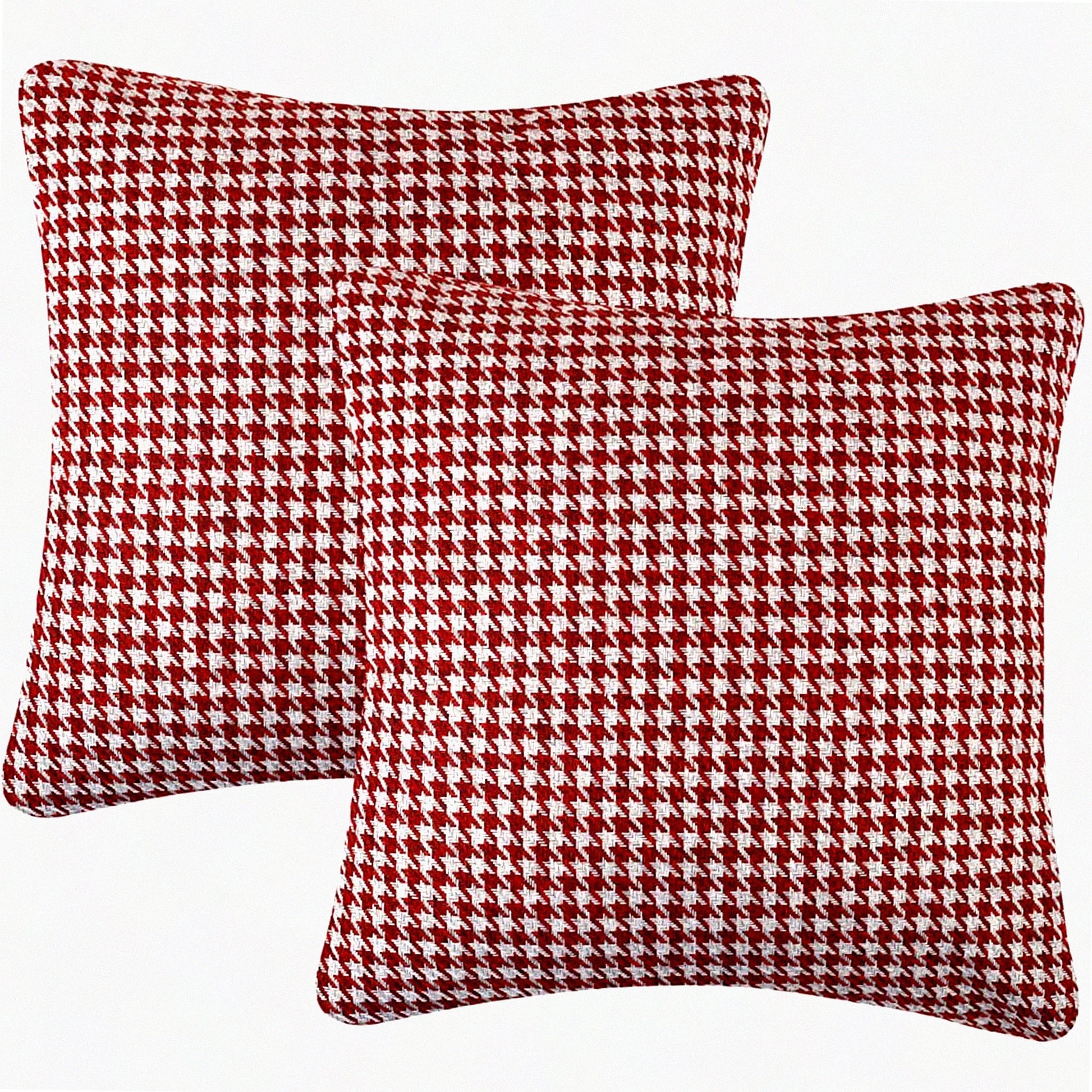 Geometric Houndstooth Cotton Linen Pillow Covers - Set of 2, Red 18x18 Inches - Decorative Cushion Cases for Couch, Sofa, Bed, Chair