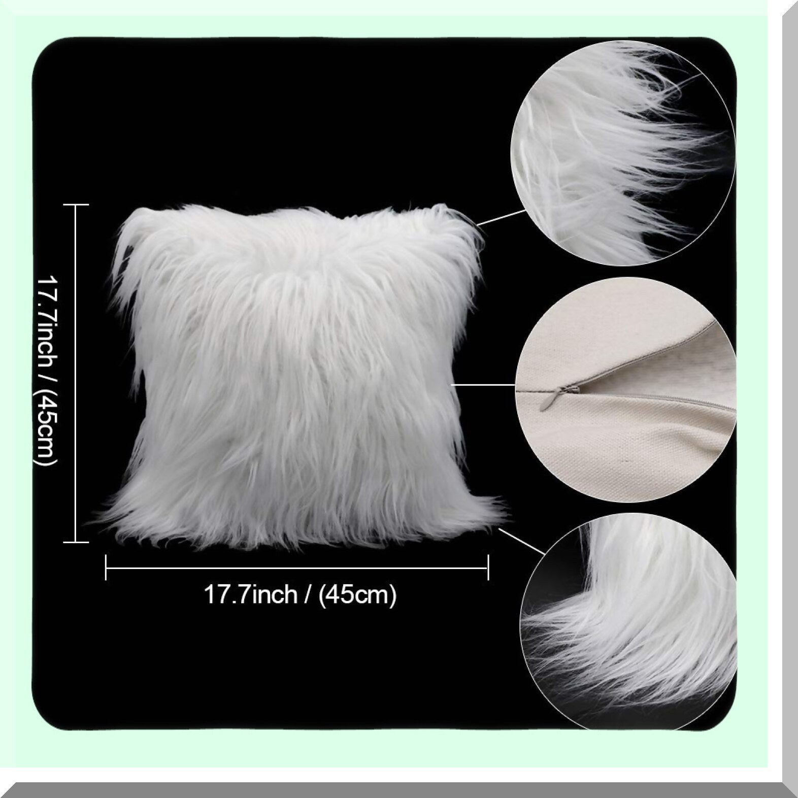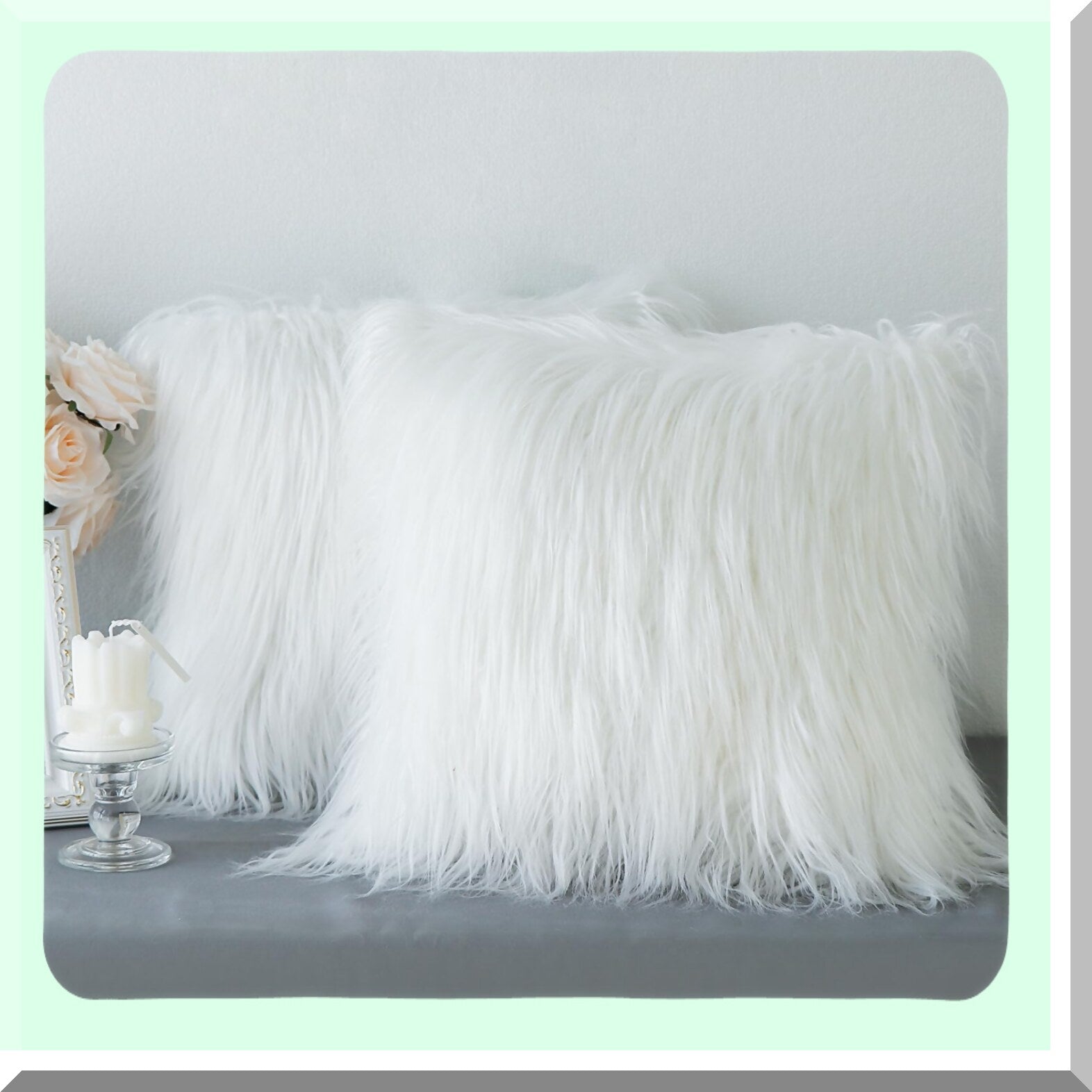 Luxury Merino Fluffy Cushion Covers - Set of 2 Plush Decorative Pillows for Living Room, Couch, Bed, Car, Chair - 18" x 18" Off-White - Soft and Stylish
