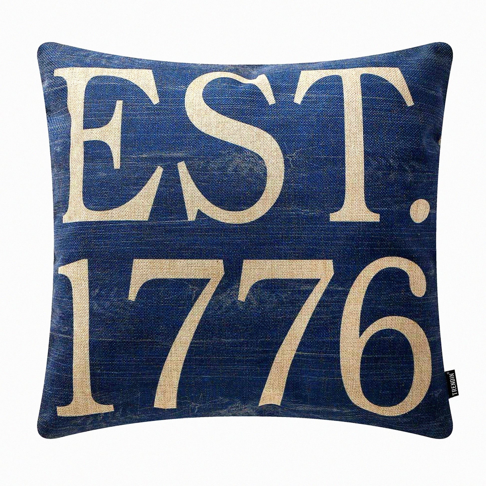Vintage Americana Patriotic Pillow Cover - 18x18 Inch Blue 1776 Cushion Case - Square Decorative Throw Pillow - PL350TR