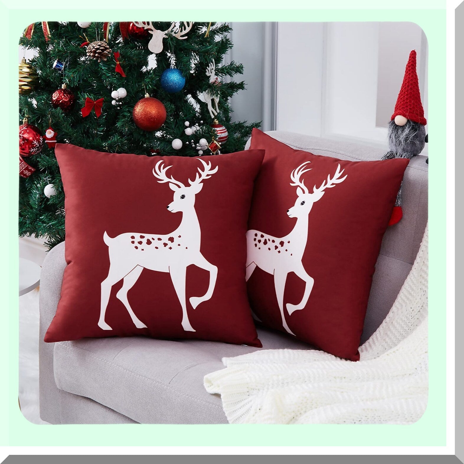 Winter Wonderland Deer Pillow Covers - Set of 2 Farmhouse Decorative Cushion Cases 18x18 Inch for Bedroom & Home Couch, Rustic Xmas Holiday Theme in Pink