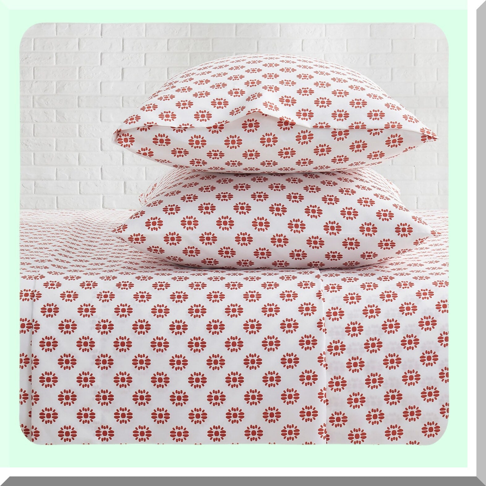 The practical benefits of this bedding set include a soft and wrinkle-resistant fabric made of 100% polyester. The set includes a flat sheet, fitted sheet, and two standard size pillowcases. The care instructions are simple, as the set is machine washable and dryer safe. Users will appreciate the low maintenance of this bedding set, as well as the comfort and durability of the polyester fabric.