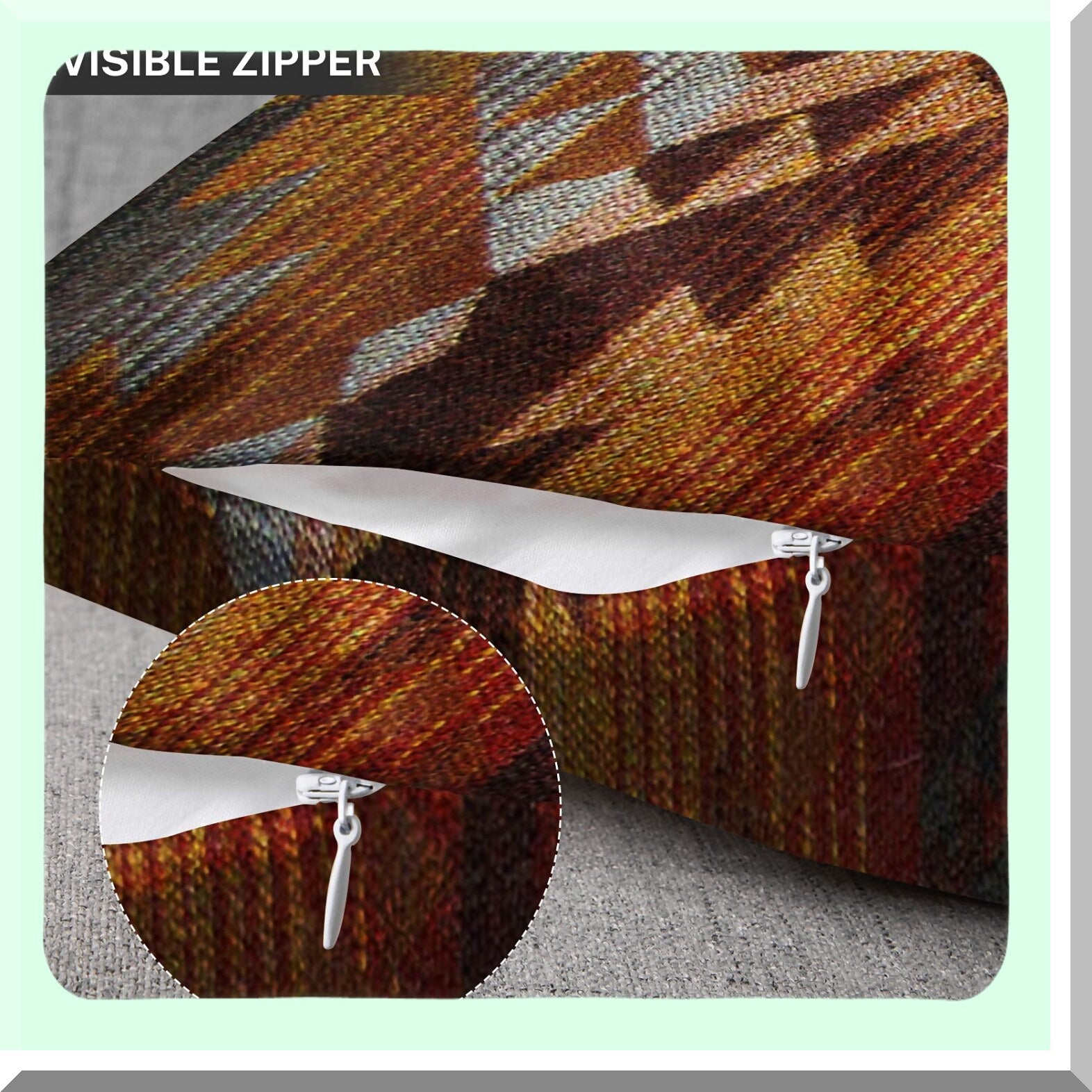 Tribal Linen Decor Pillowcase - Navajo Orange Red Grey Throw Pillow Cover - Hidden Zipper - 18x18 Inches - Bedroom Sofa Accent