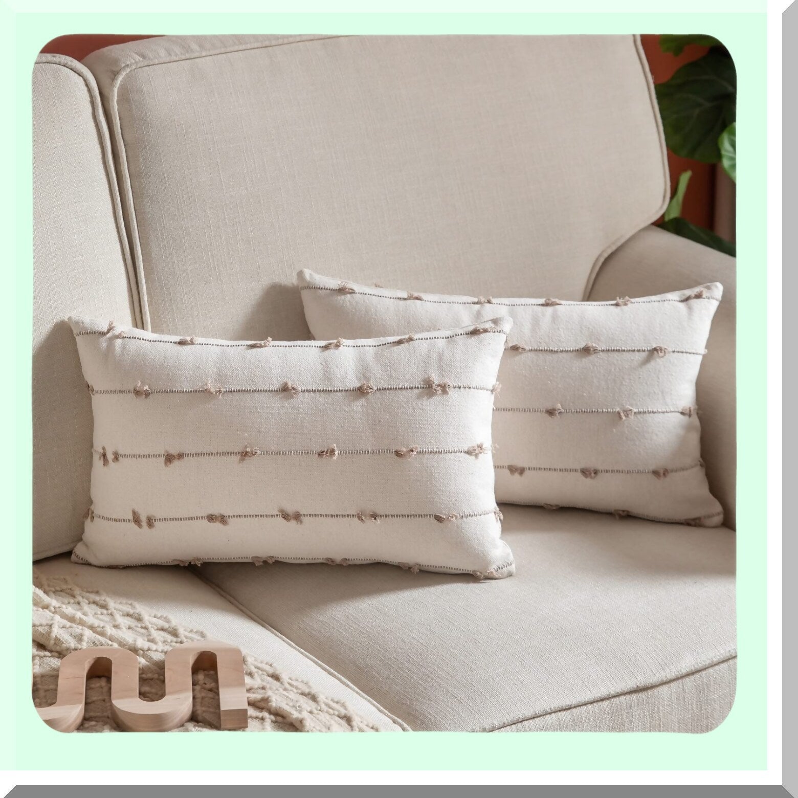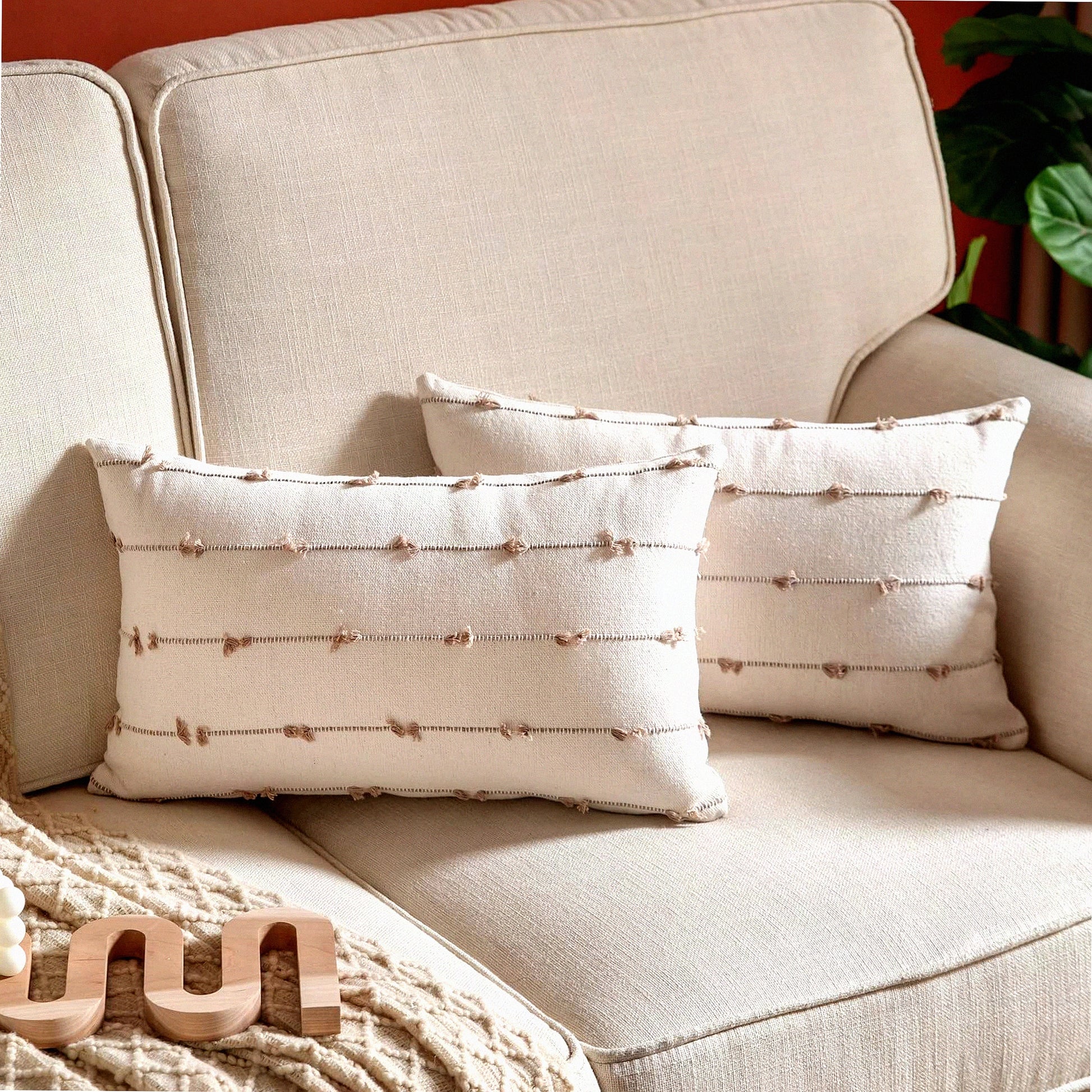 Natural Boho Farmhouse Pillow Covers - Set of 2 Beige 12x20 Inch Decorative Cushion Cases for Couch & Bed, Modern Living Room Decor