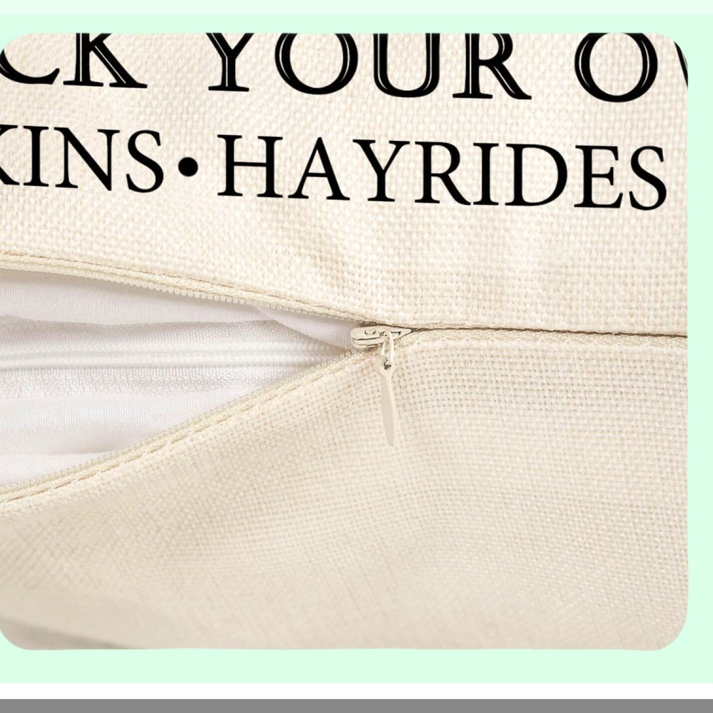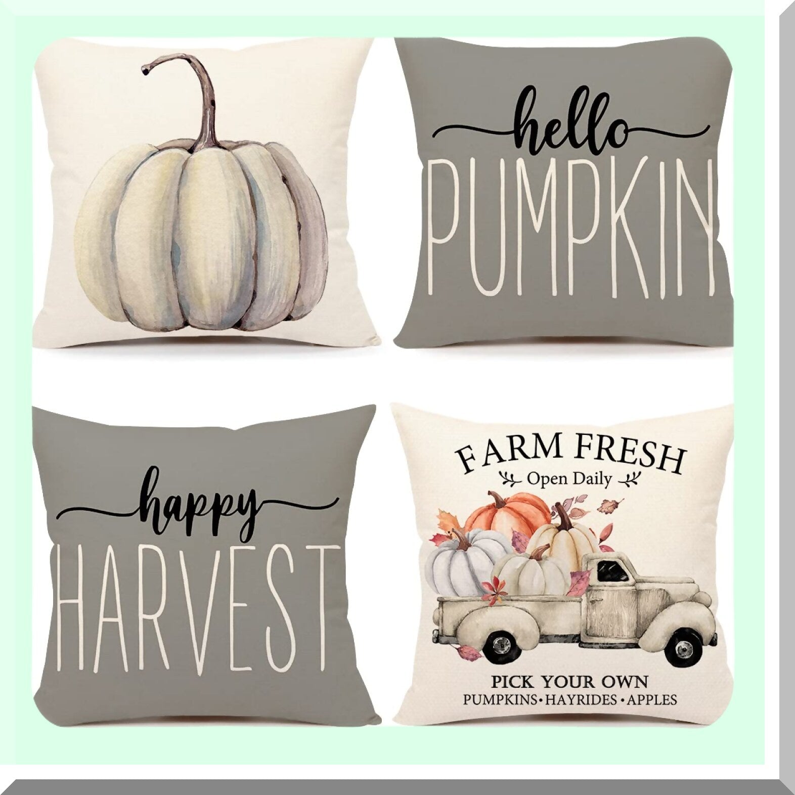 The package includes a set of 4 fall-themed pumpkin pillow covers, providing a seasonal decorative touch. No inserts or fillers are included, allowing users to use their existing pillows.