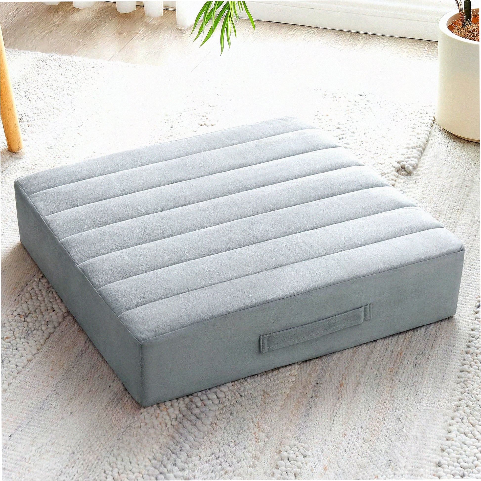 Premium Comfort Floor Cushion - Large 22" Meditation Pillow for Adults, Thick Foam Seat with Soft Tufted Cover. Ideal for Yoga, Outdoor Sitting. Light Gray Square Cushion.