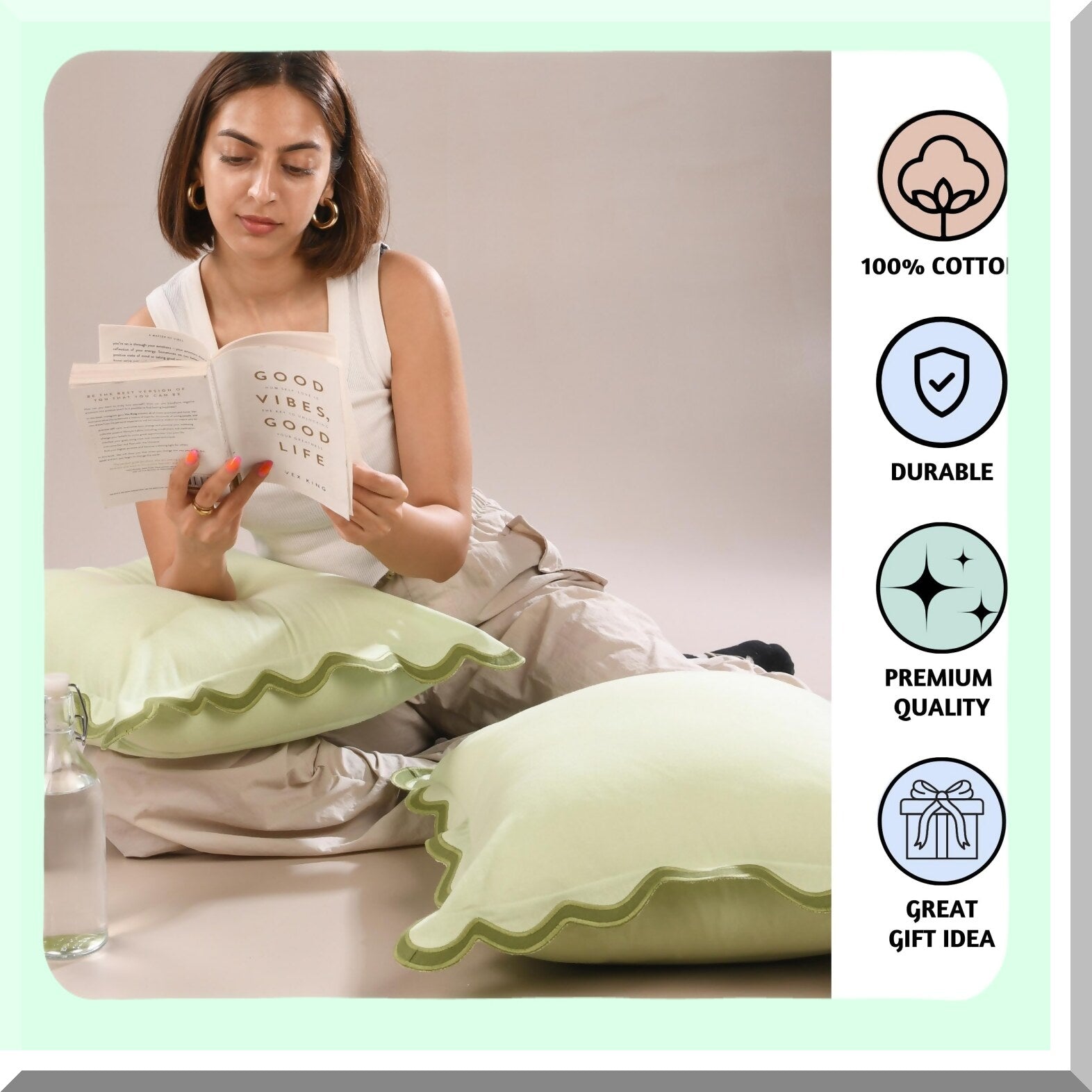 Boho Flower Decorative Pillow Covers - 18x18 Cotton Couch Pillows - Cute Outdoor Throw Pillows - Preppy Forest Sage Throws - Living Room Accessories