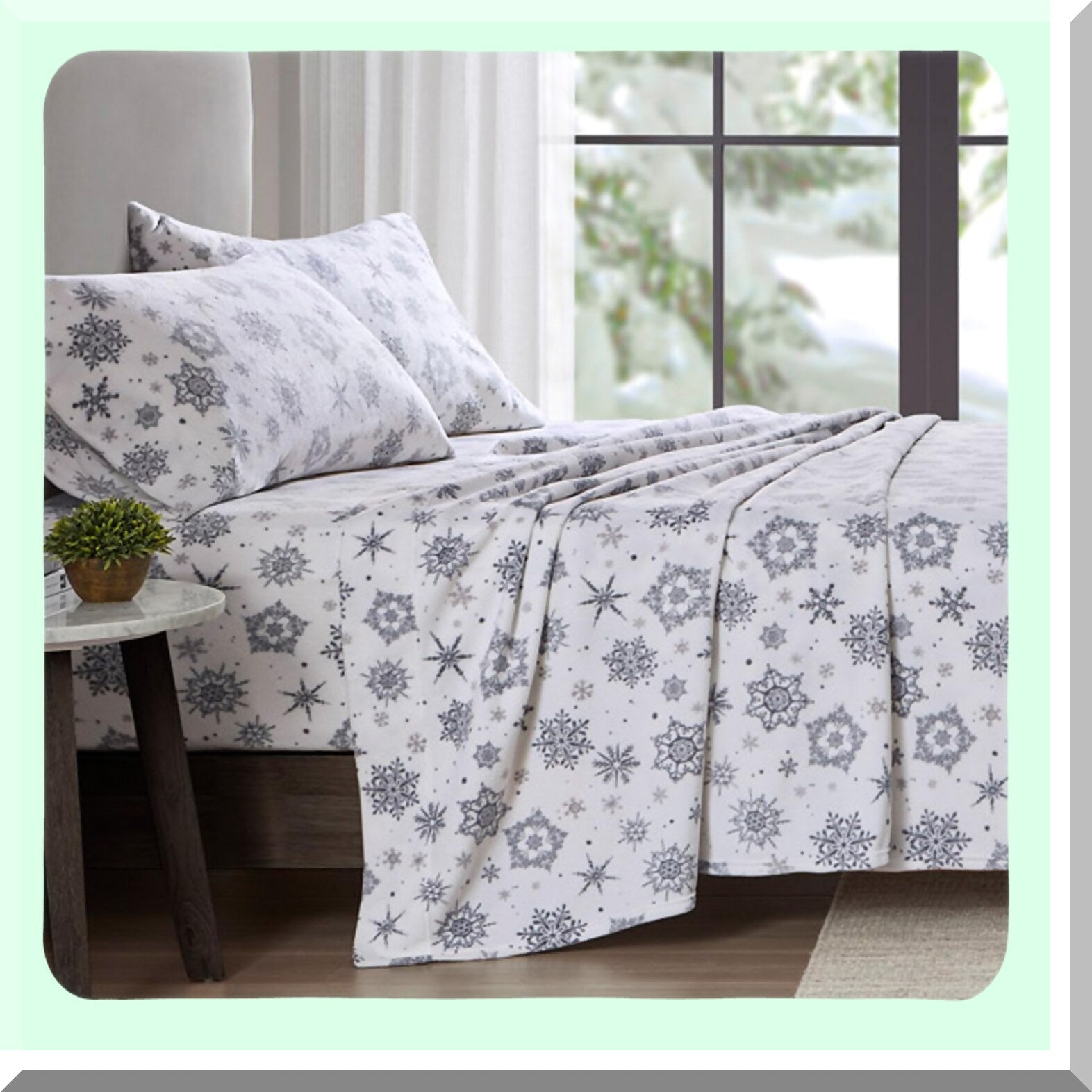WinterDreams Plush Fleece Sheet Set - Twin Size - Deep Pocket Fitted Sheets - Snowflake Boho Design - Cozy Bedding for Cold Nights - 3 Piece Set