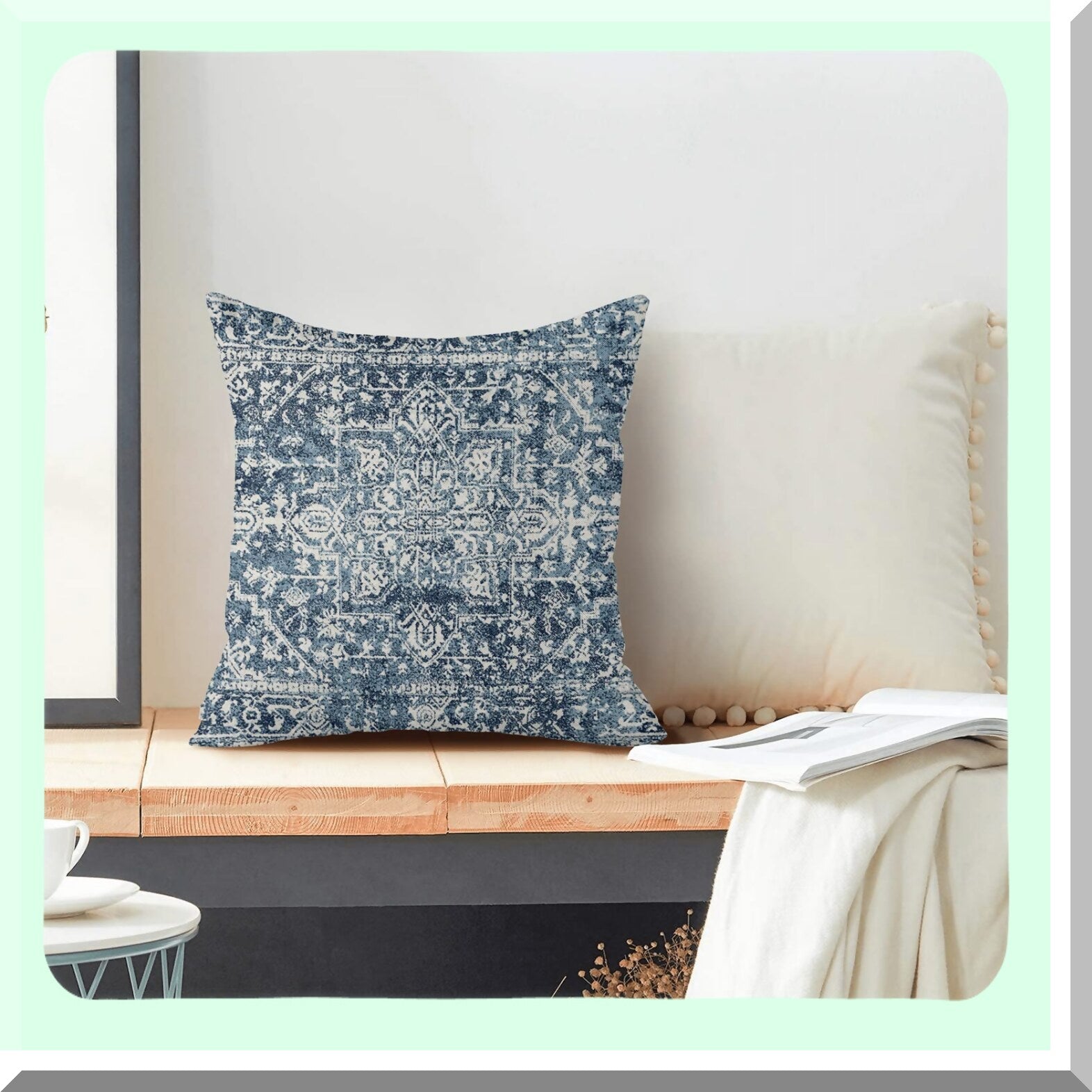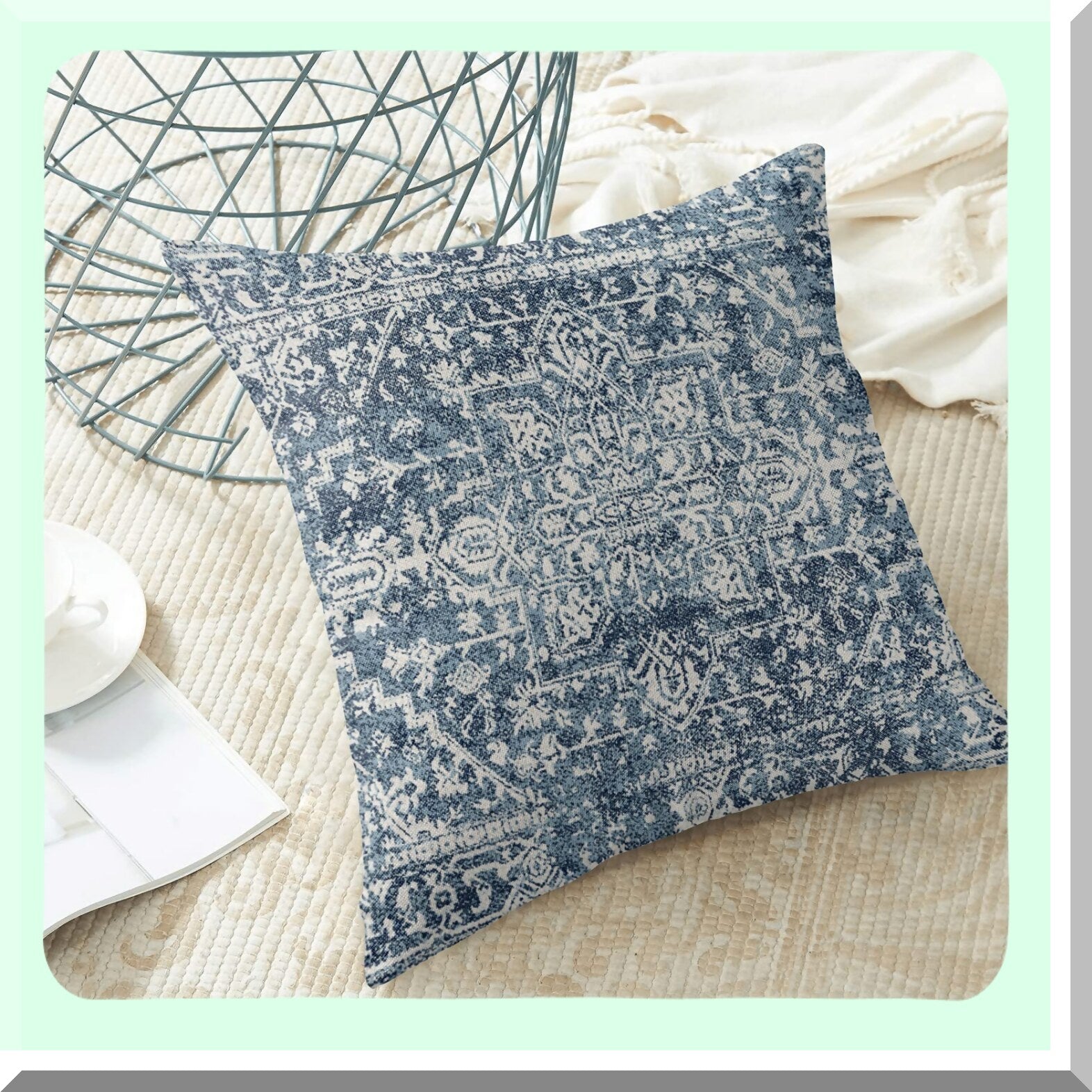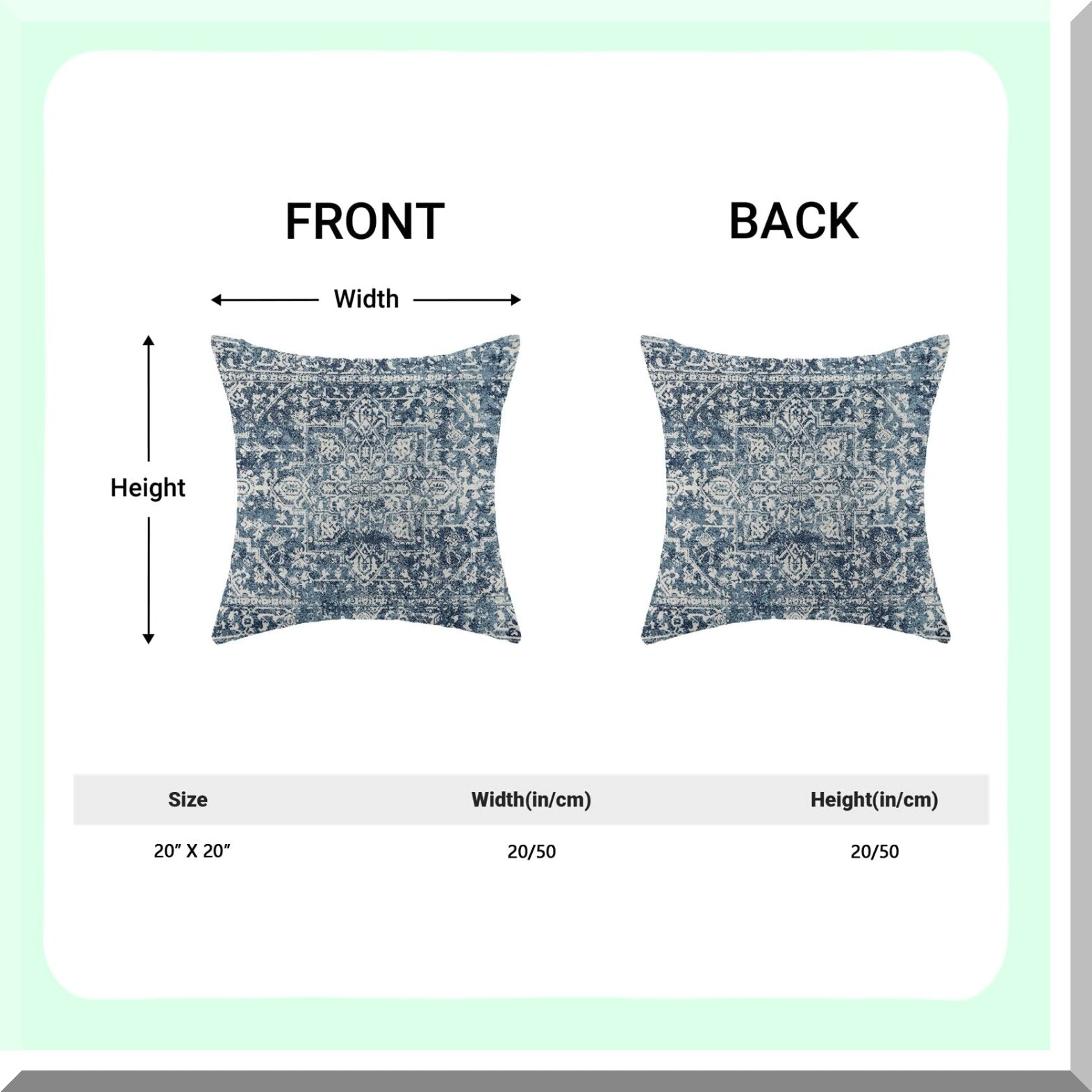 Blue Boho Farmhouse Pillow Covers - Set of 2, 20x20 Ethnic Carpet Throw Pillow Cases for Couch Sofa, Bohemian Style Linen Cushion Covers for Outdoor Home Decor