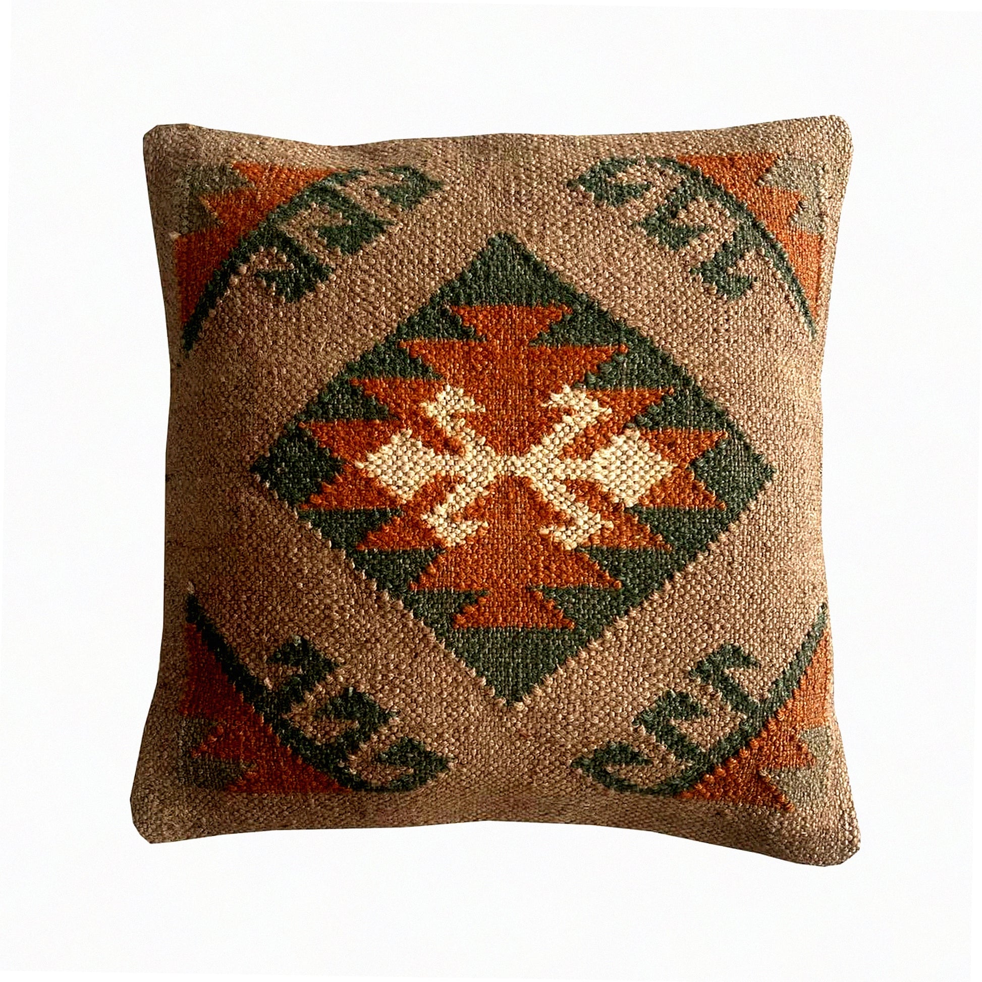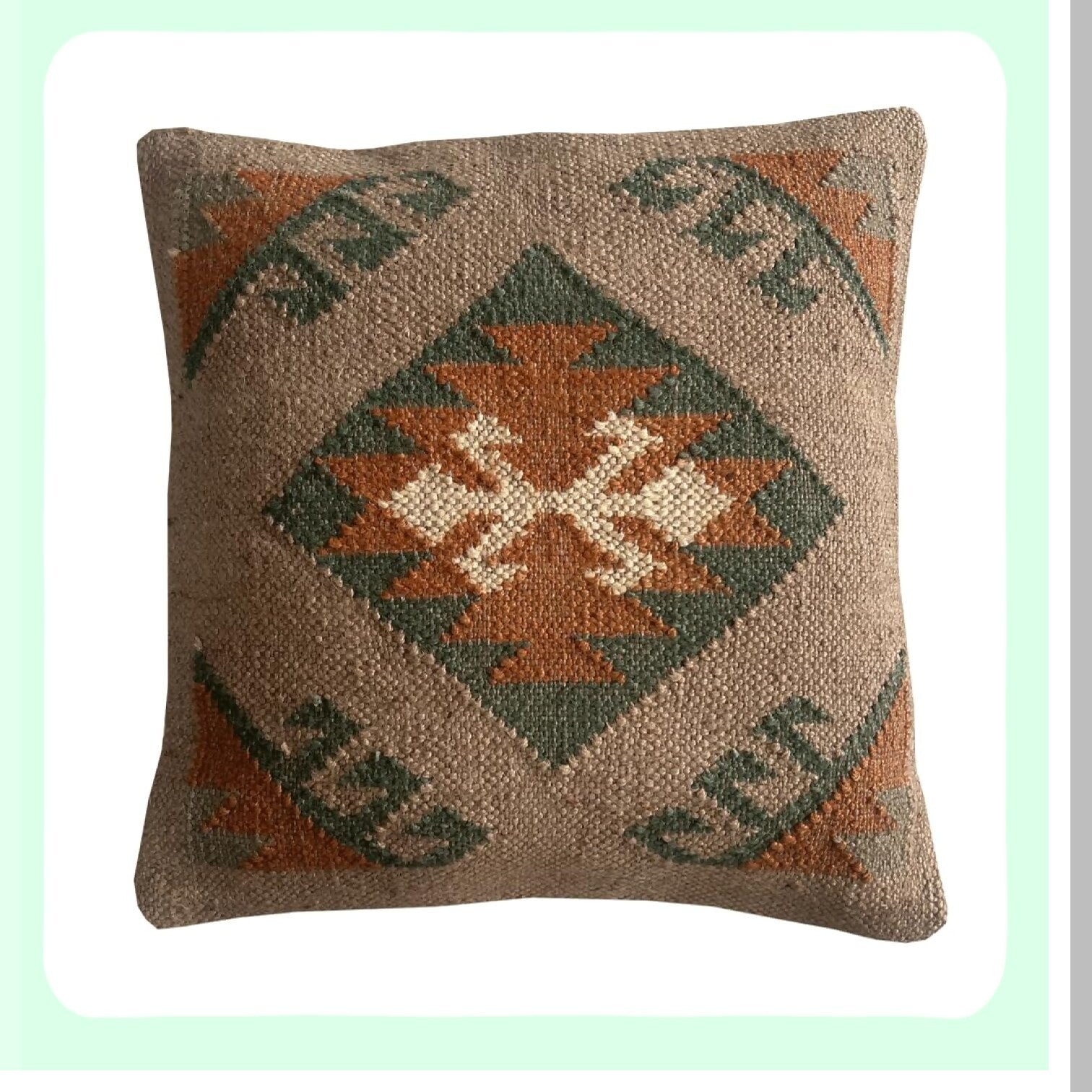 Boho Wool Jute Kilim Square Pillowcase - Vintage Ethnic Decorative Cushion Cover for Outdoor 18X18 Pillows