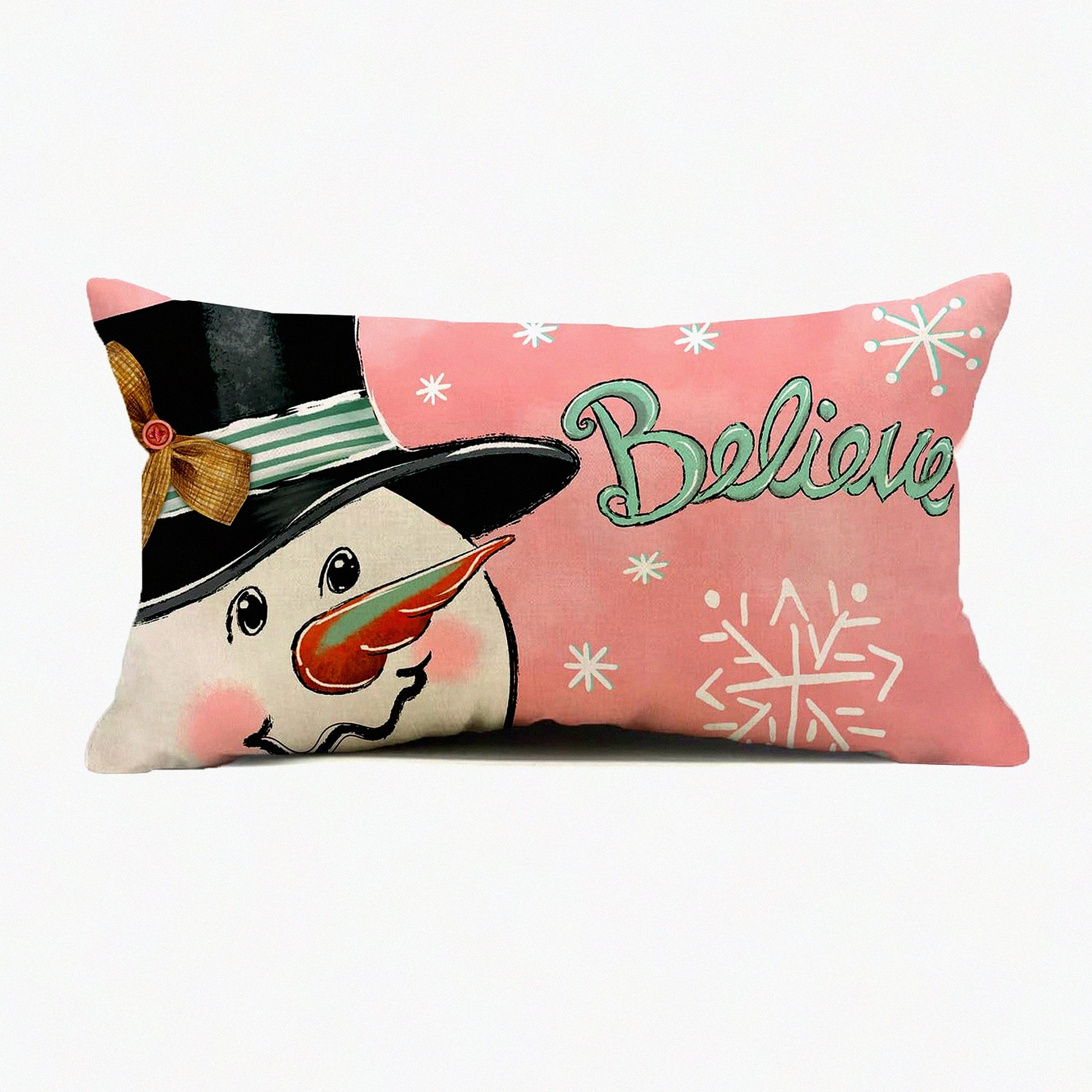 Winter Wonderland Lumbar Pillow Covers - Set of 2 Snowflake Snowman Believe Holiday Decorative Cushion Cases for Sofa Couch - 12x20 Pink Outdoor Pillows
