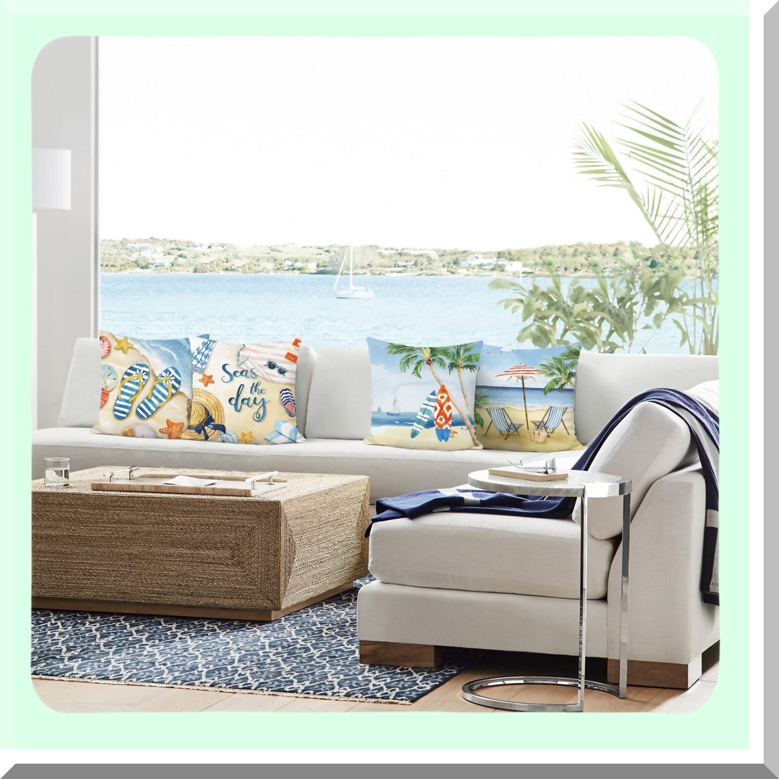 Starfish Surf Summer Pillow Covers - Set of 4 | Beach Palm Tree Seaside Decorative Cushion Cases 18x18 | Soft Velvet Throw Pillows for Couch Sofa Bed Home Decor