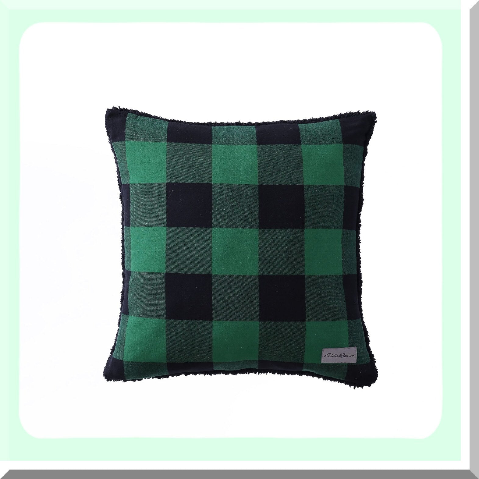 CozyPlaid Reversible Flannel/Sherpa Throw Blanket & Pillow Cover Set - All-Season Green/Black Buffalo Plaid Home Decor Bundle