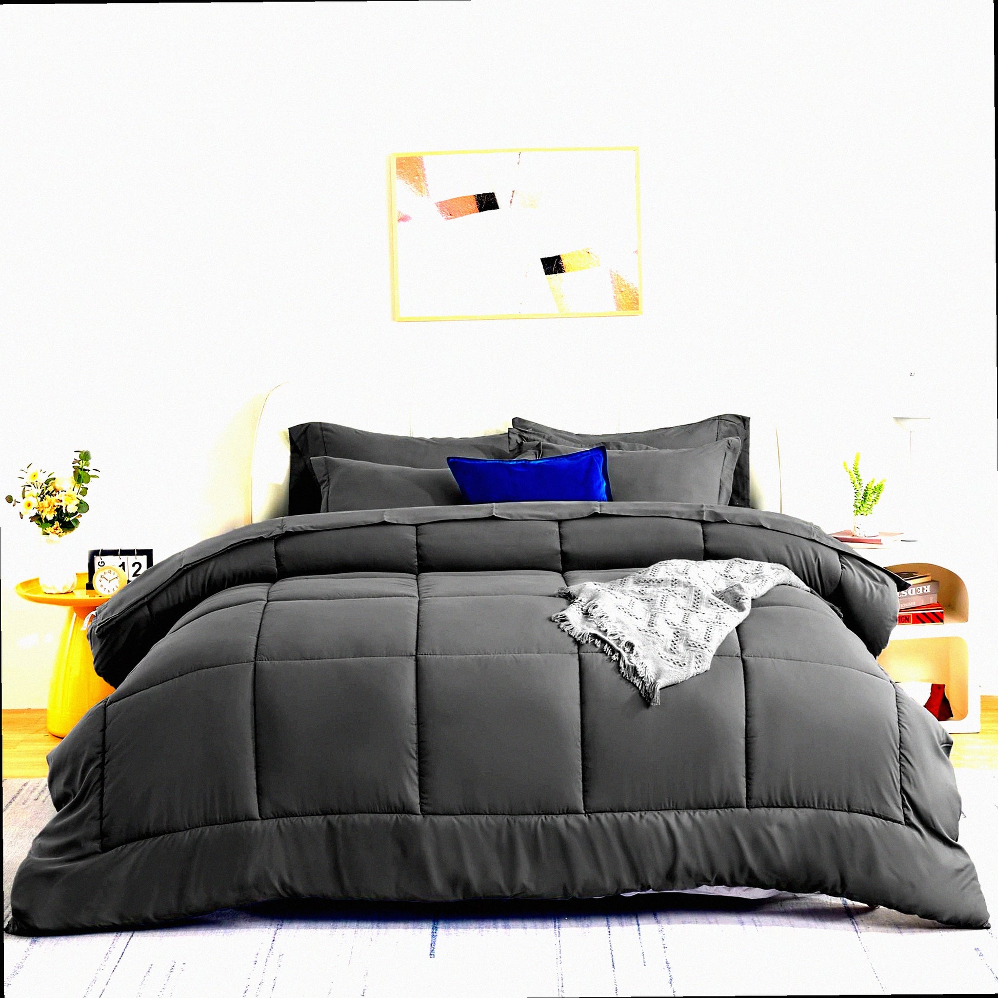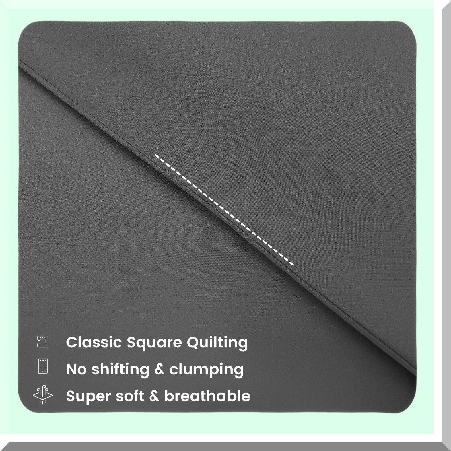 CoolBreeze Reversible Queen Comforter Set - All Season Soft Breathable Bedding with Down Alternative Fill, Square Quilting in Grey Color.